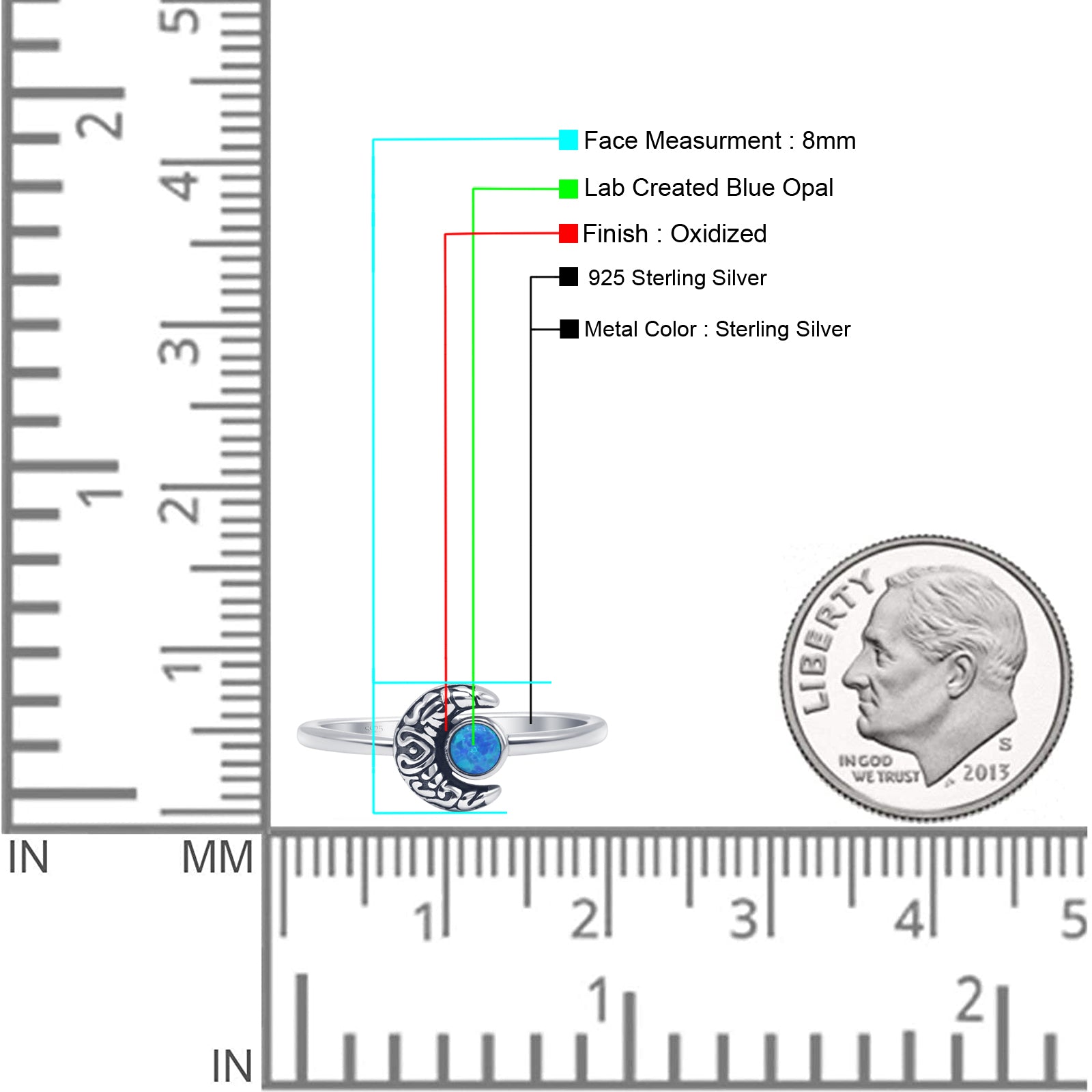 Design: Oxidized Round Lab Created Blue Opal Moon Ring.