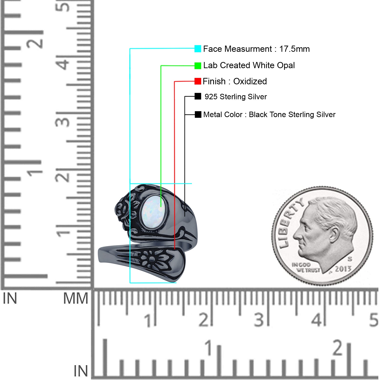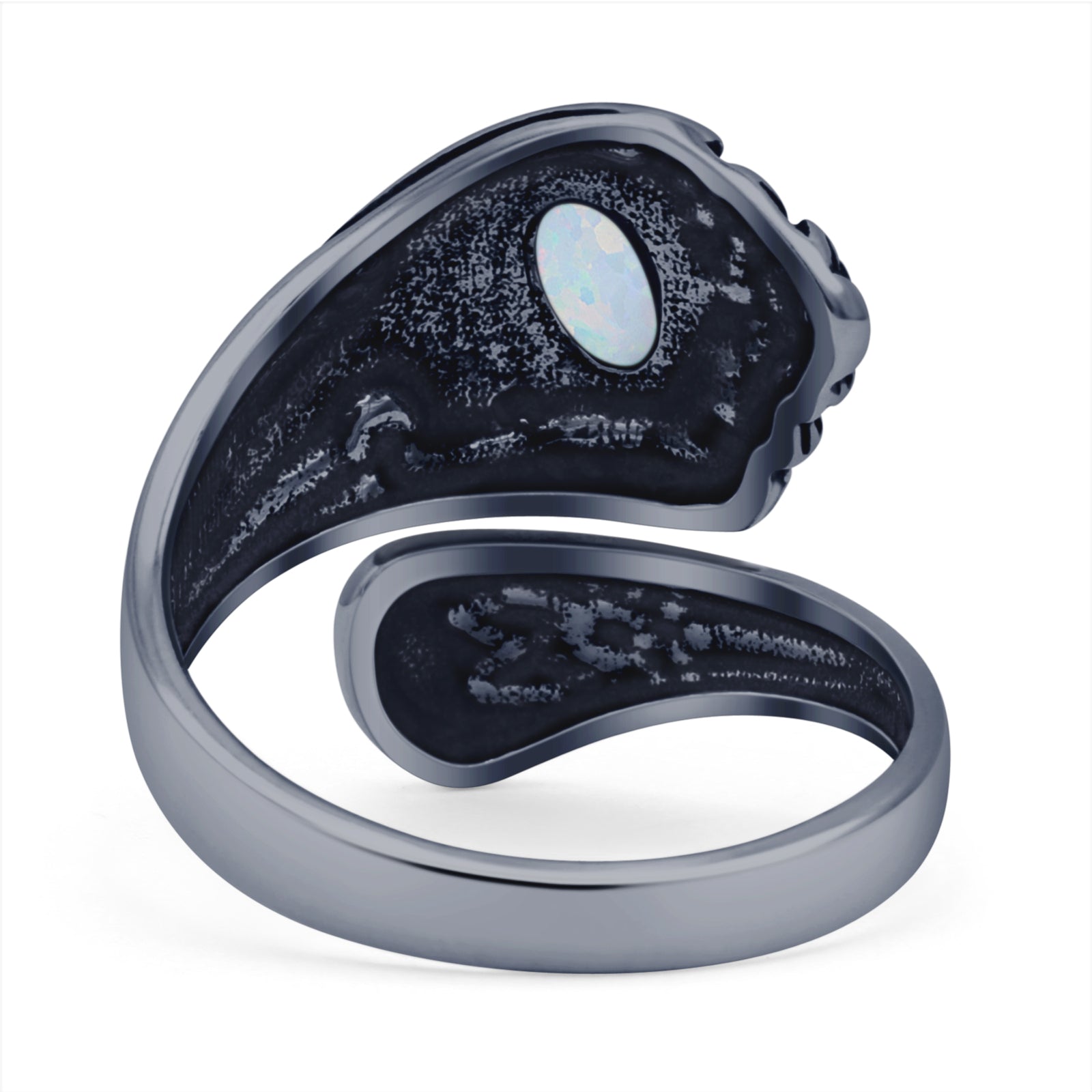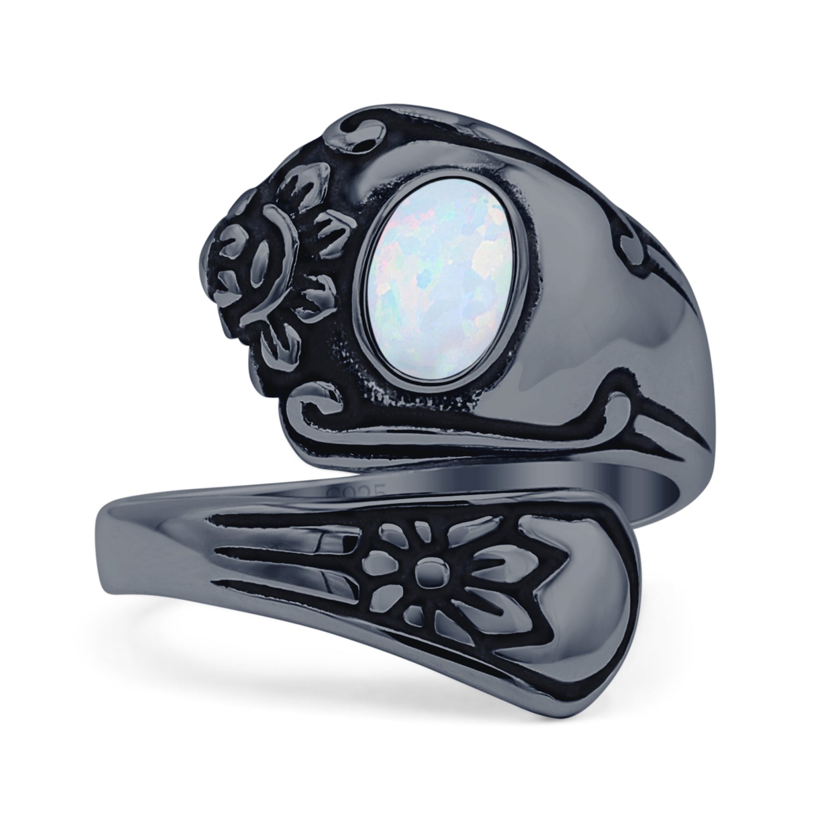 Design: Oxidized Oval Lab Created White Opal Vintage Spoon Ring.