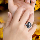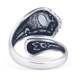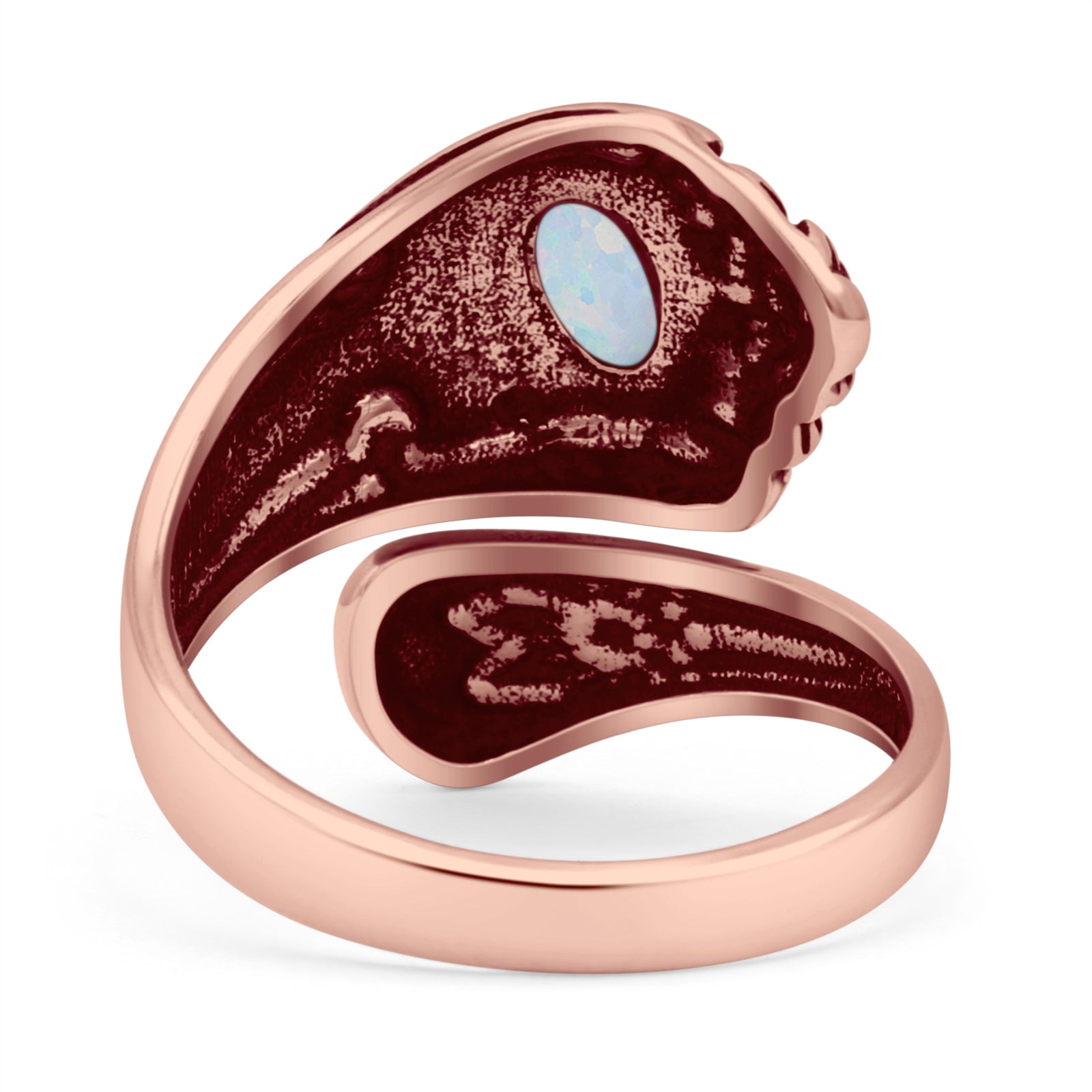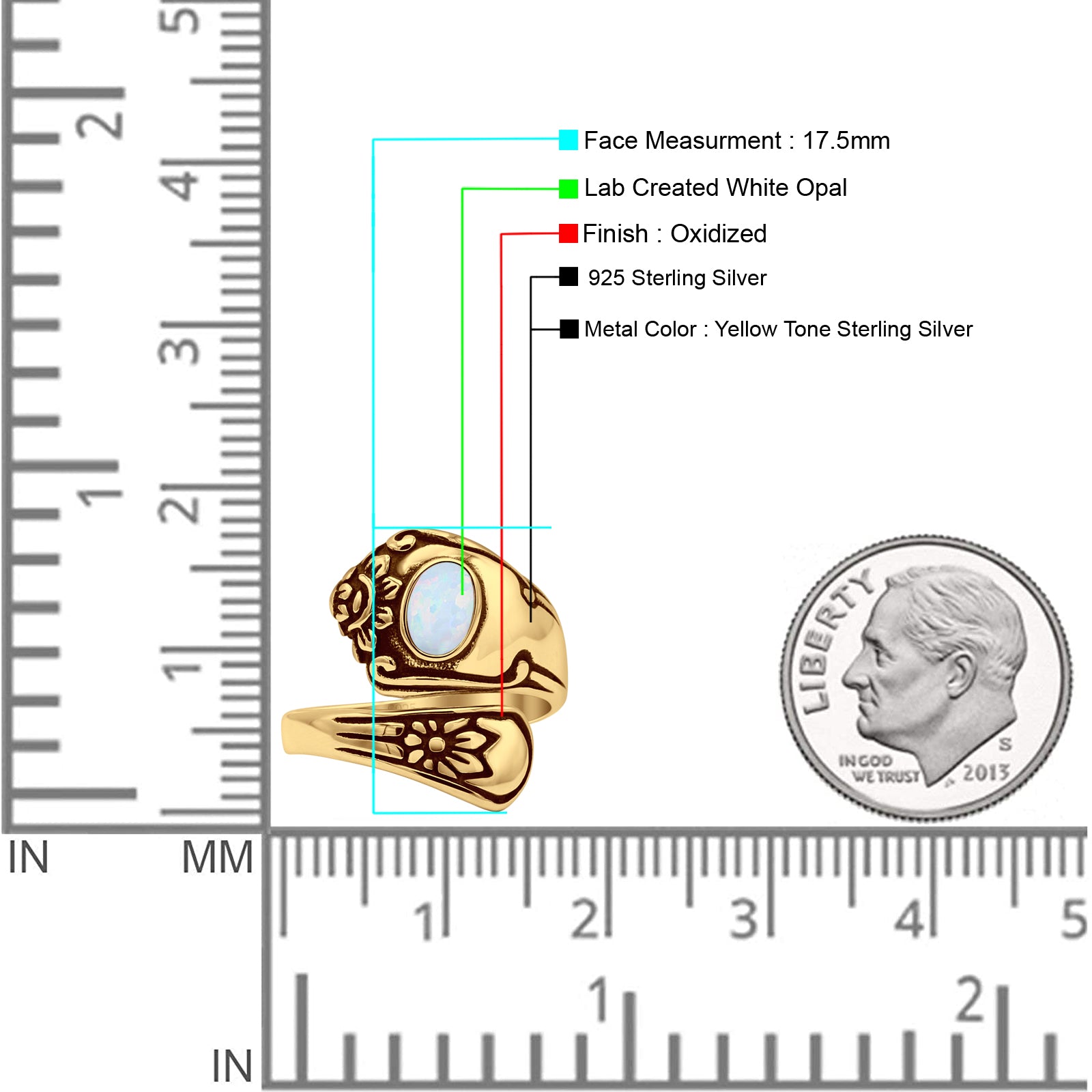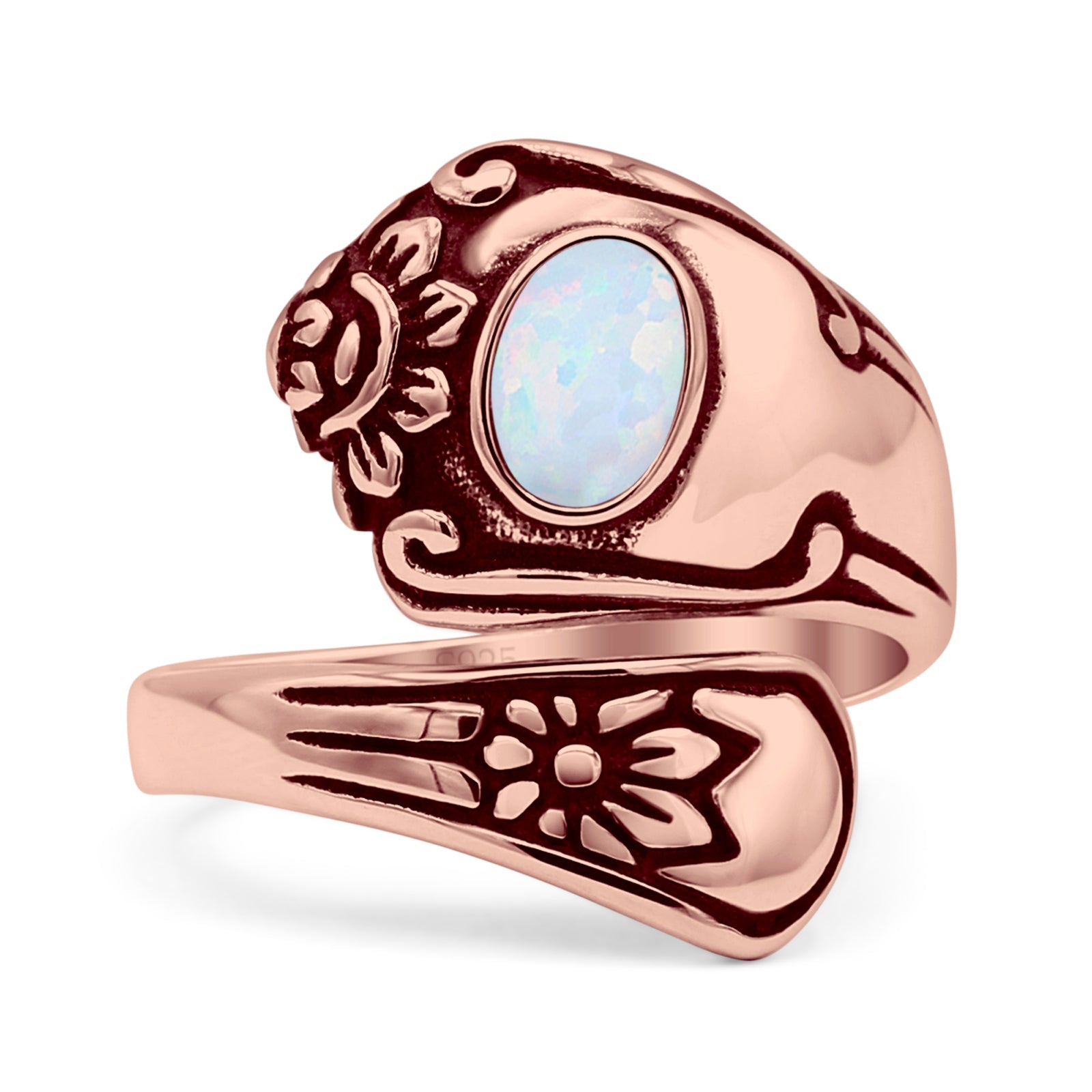 Design: Oxidized Oval Lab Created White Opal Vintage Spoon Ring.