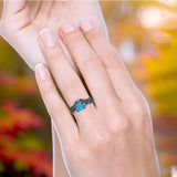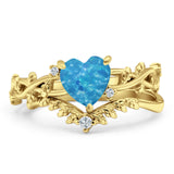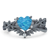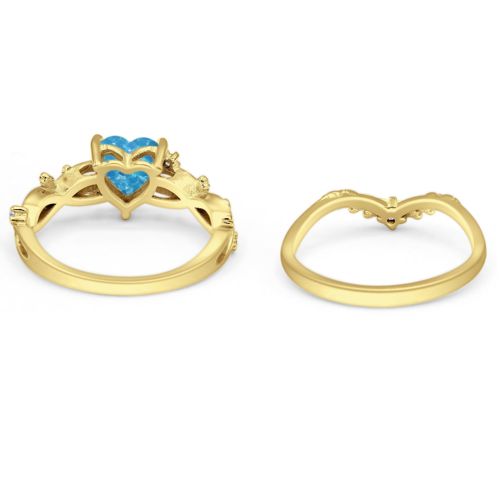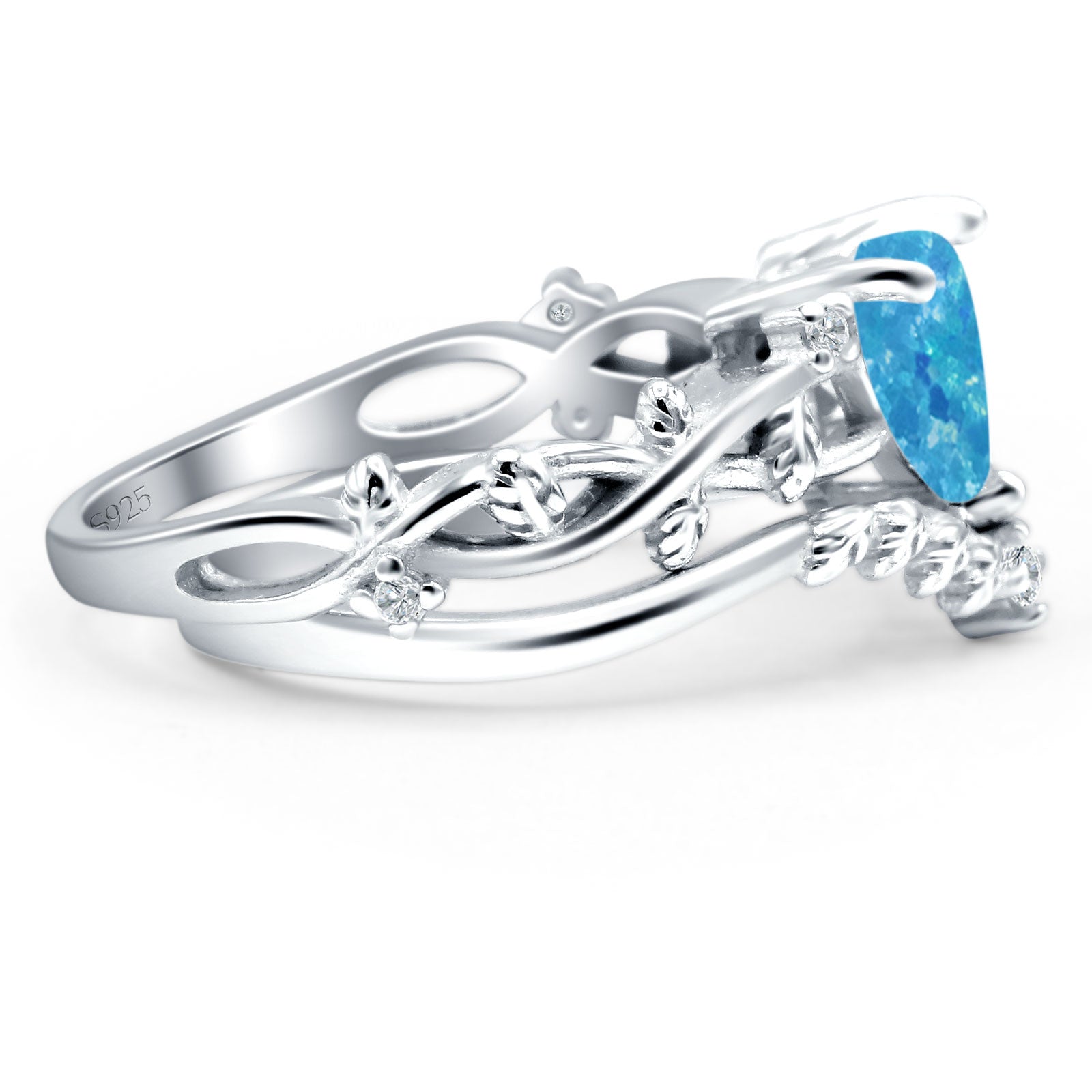 Two Piece Heart Lab Created Blue Opal Leaf Style Chevron Rings 925 Sterling Silver