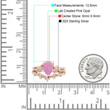 Two Piece Pear Lab Created Pink Opal Leaf Style Chevron Rings 925 Sterling Silver