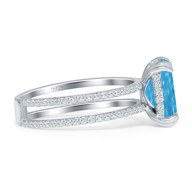 Item Specifications: Metal Type: Lab Created Blue Opal Sterling Silver.Metal Stamp or Hallmark: .925Metal Purity: 92.5% Sterling.Face Measurements From South To North: 10mm(0.39inch). gemstone Creation Method: Simulated.Gemstone: Lab Created Blue Opal.Ring Style: CZ Ring.Design: Cushion Cut CZ Ring.