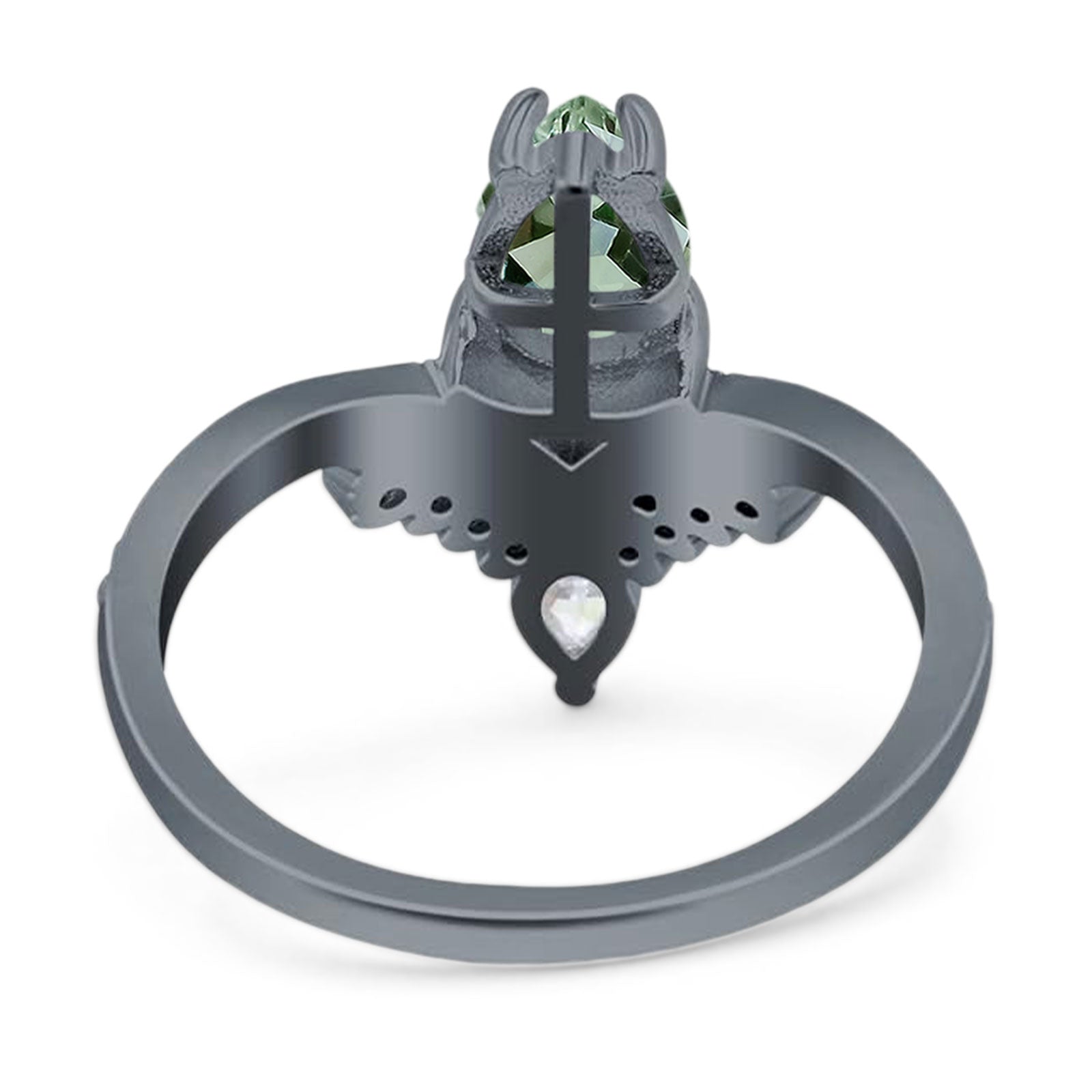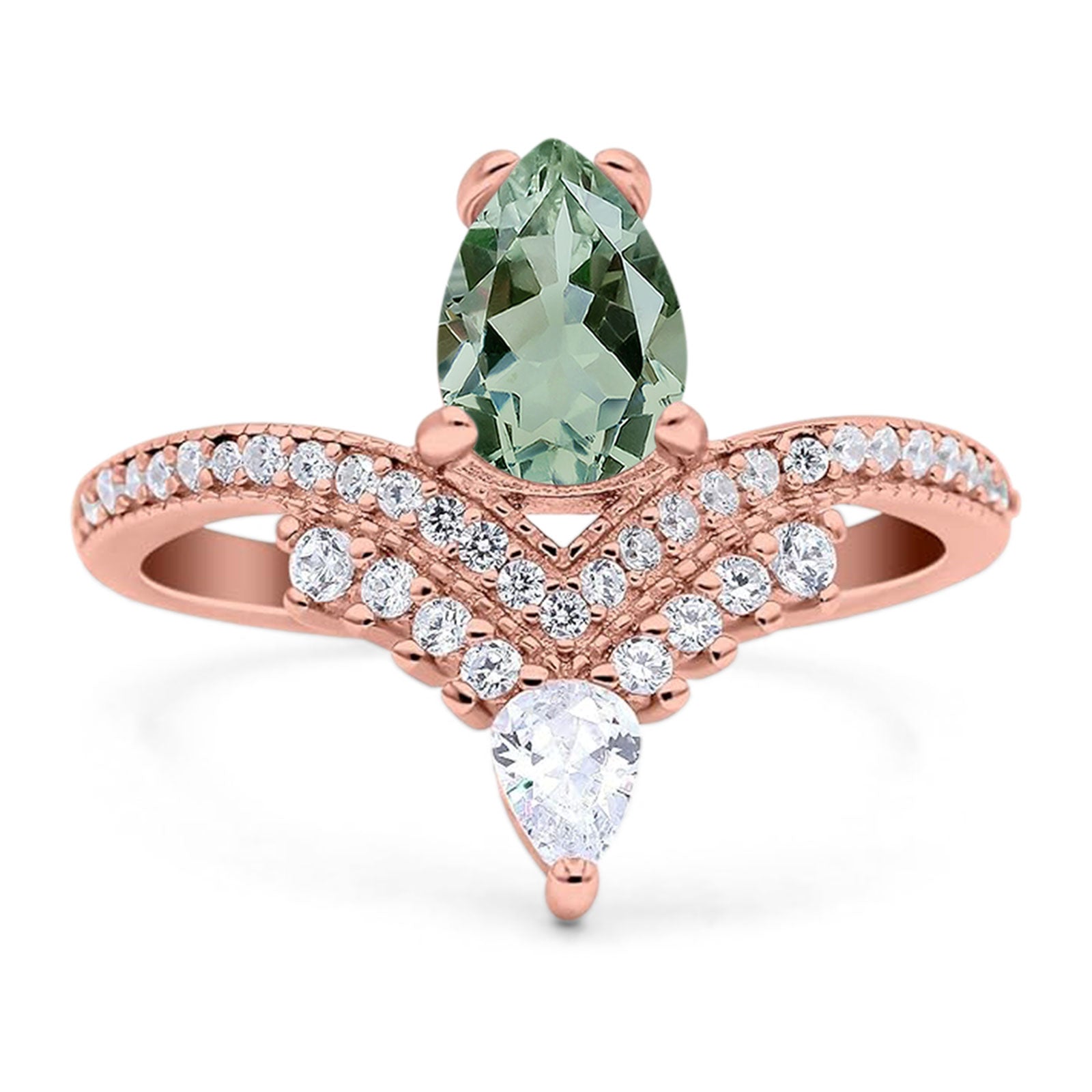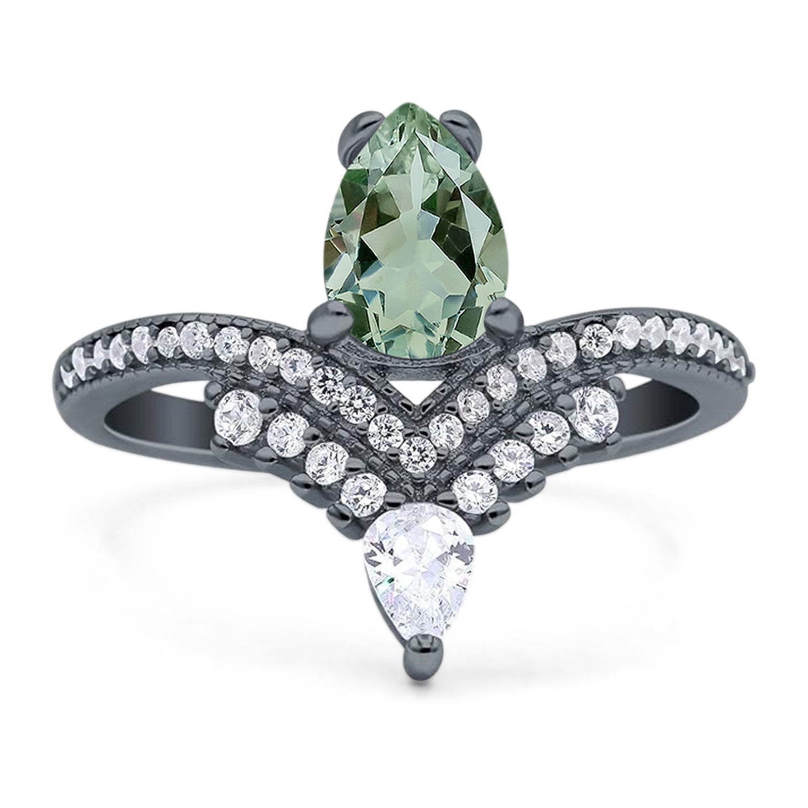 Art Deco Pear Teardrop Natural Green Amethyst Prasiolite Chevron Ring 925 Sterling Silver