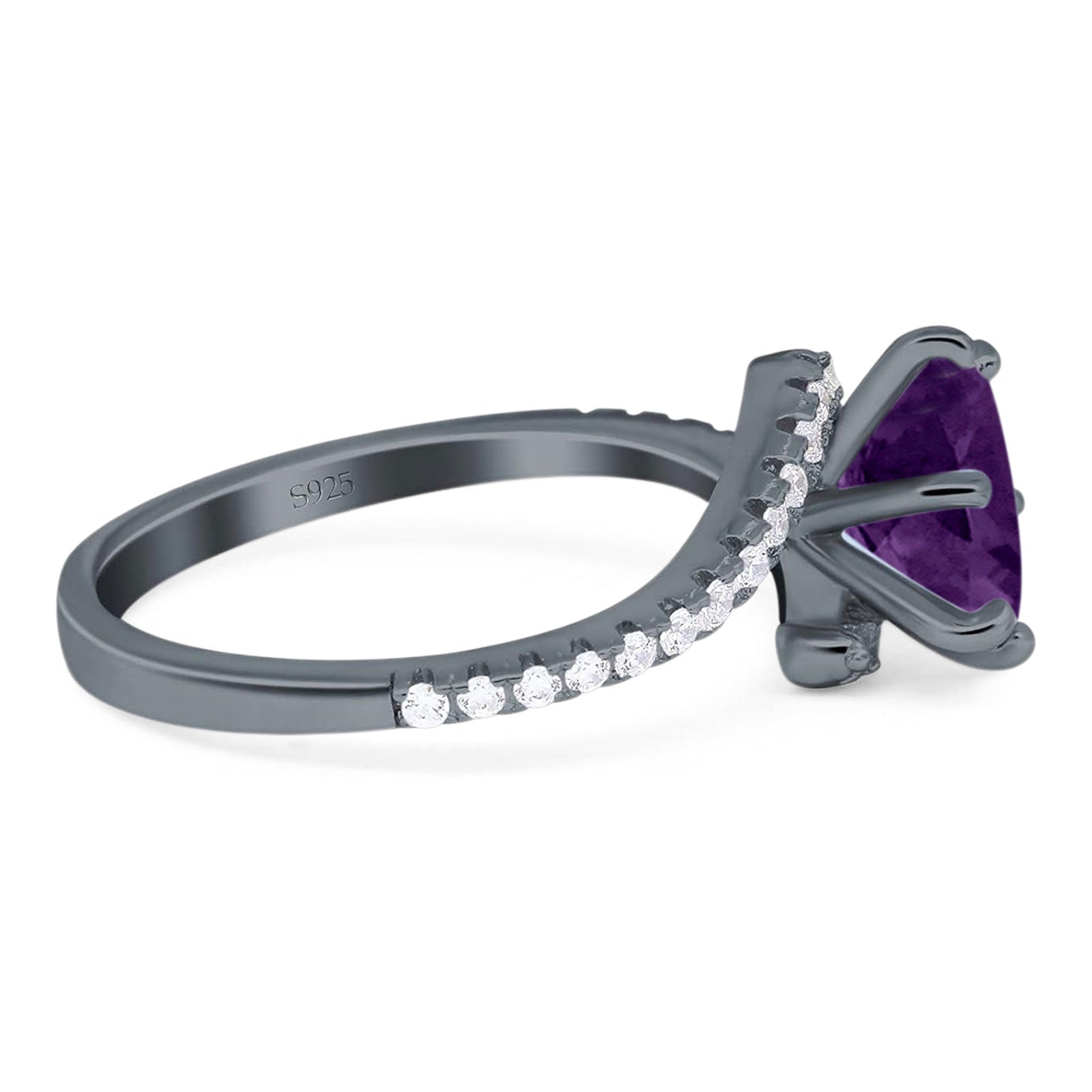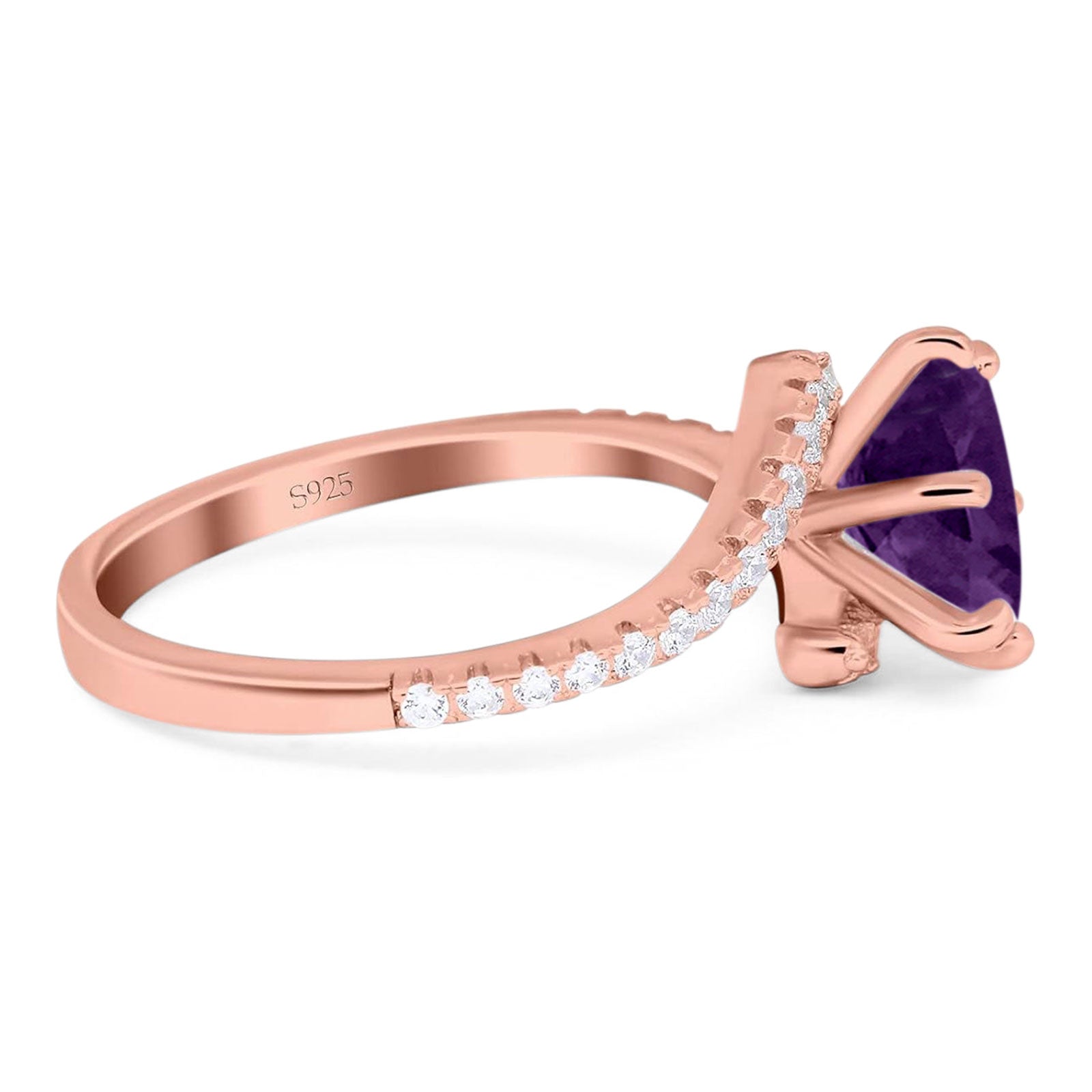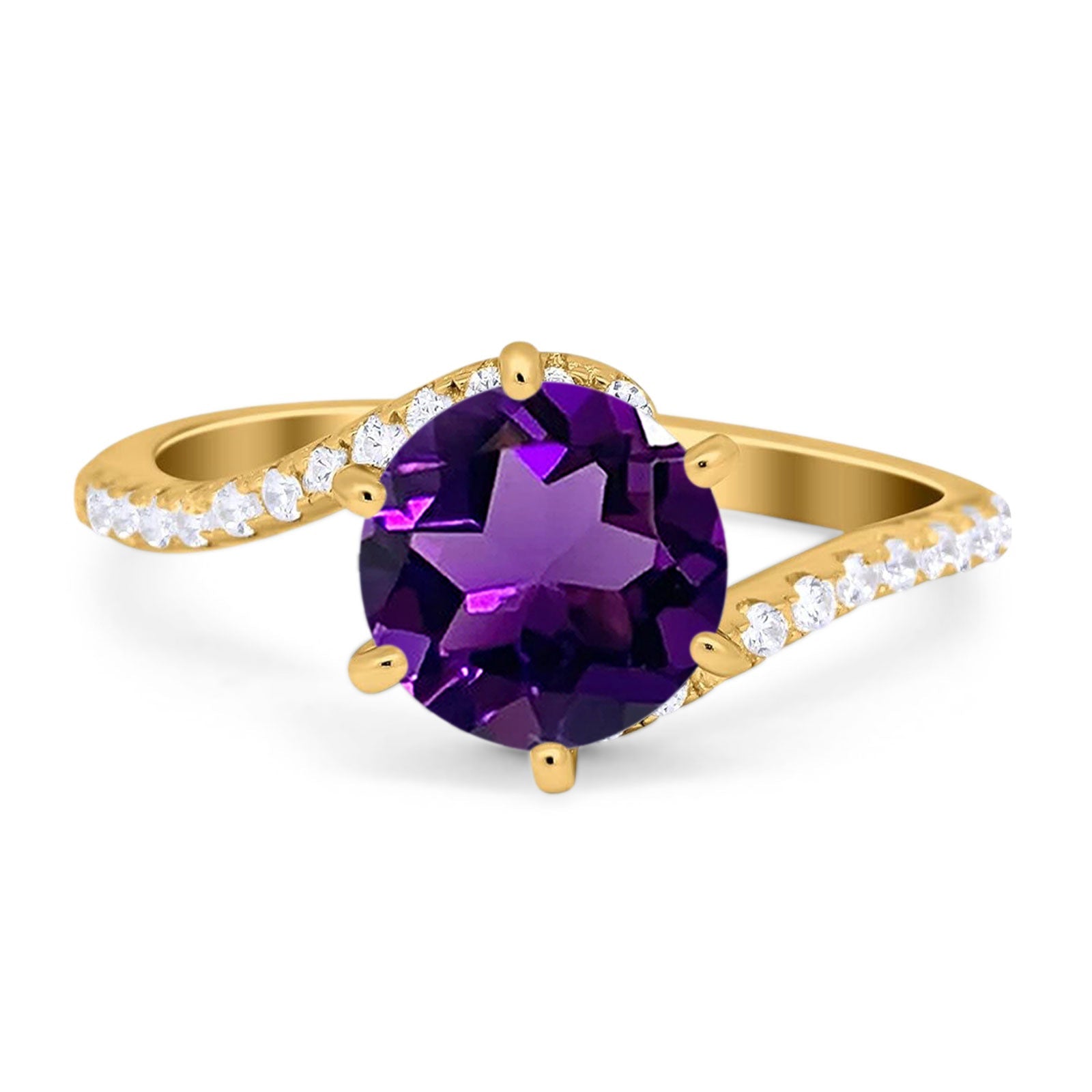 Art Deco Round Natural Amethyst Twisted Swirl Ring 925 Sterling Silver