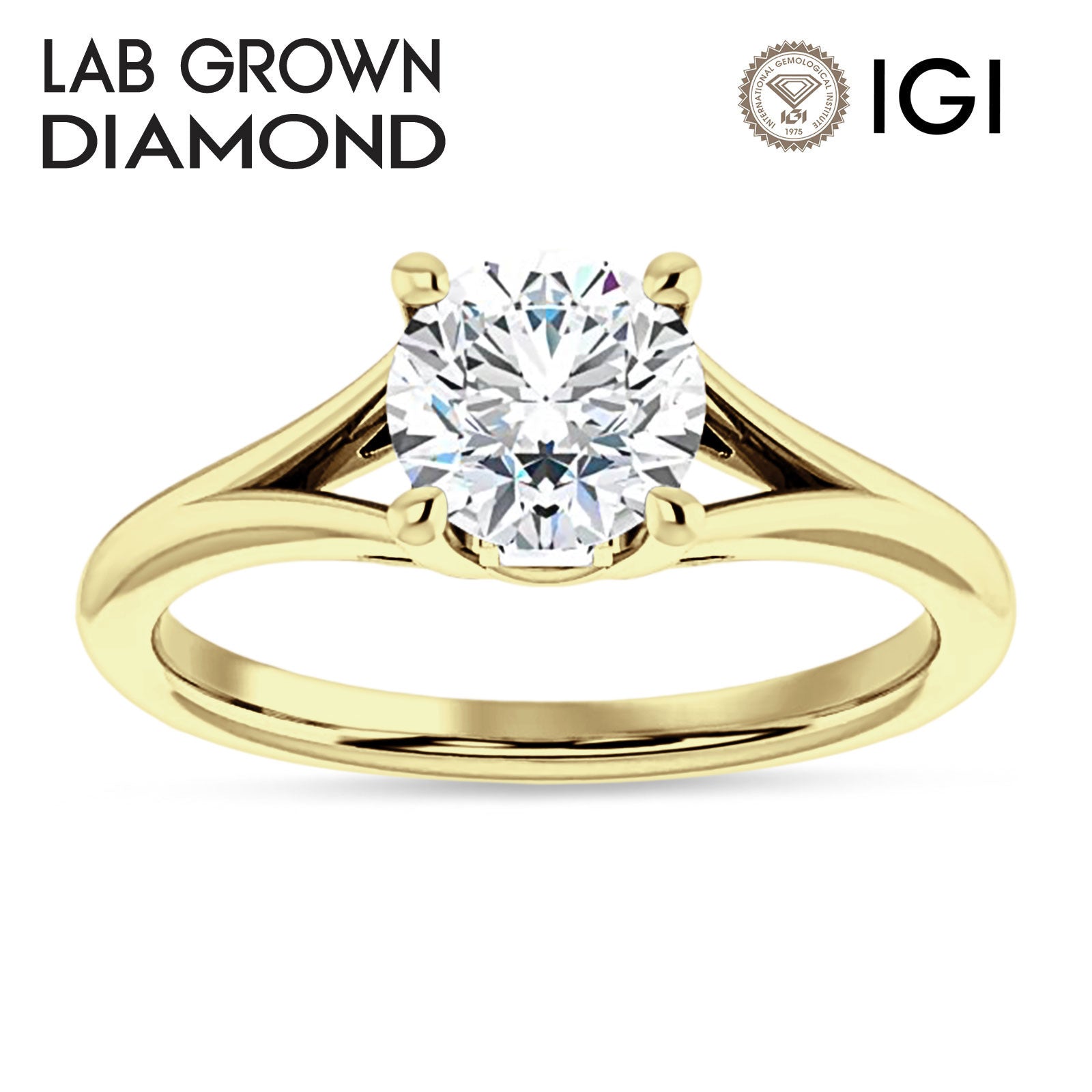 10K Gold IGI Certified Round 1 Carat Lab Grown Diamond Split Shank Hidden Halo Baguette Ring