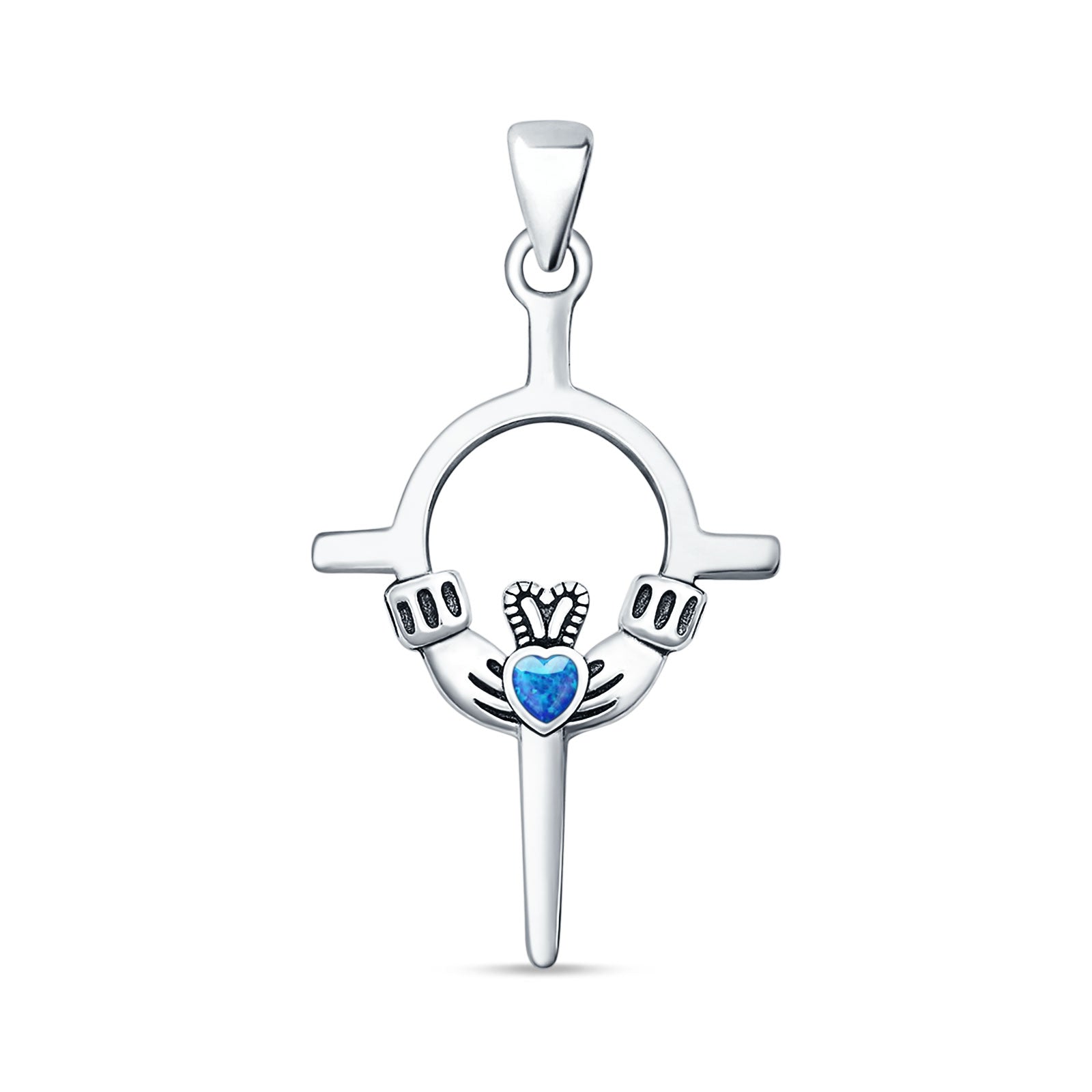 Style: Lab Created Blue Opal Claddagh Pendant Necklace