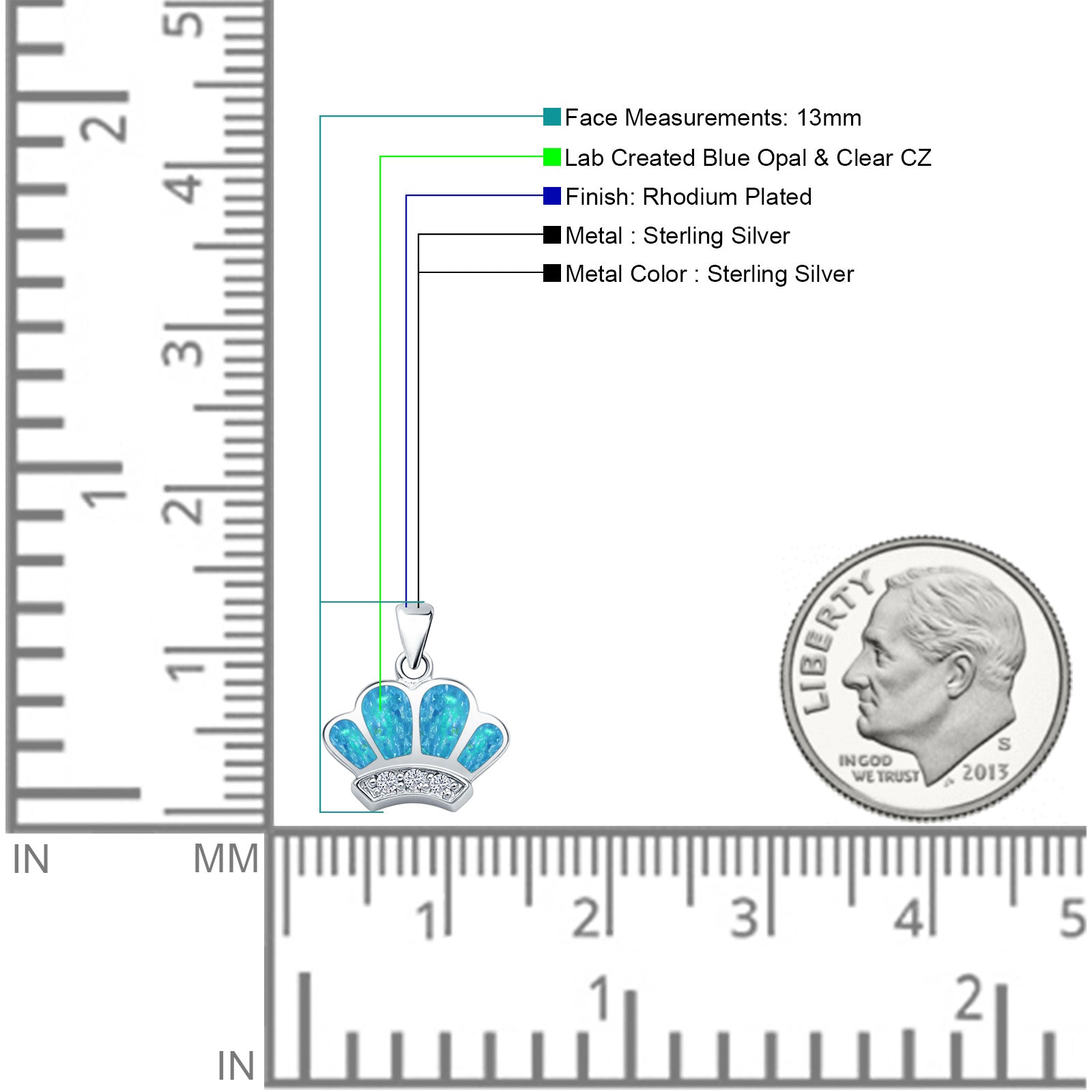 Lab Created Blue Opal Crown Pendant 925 Sterling Silver
