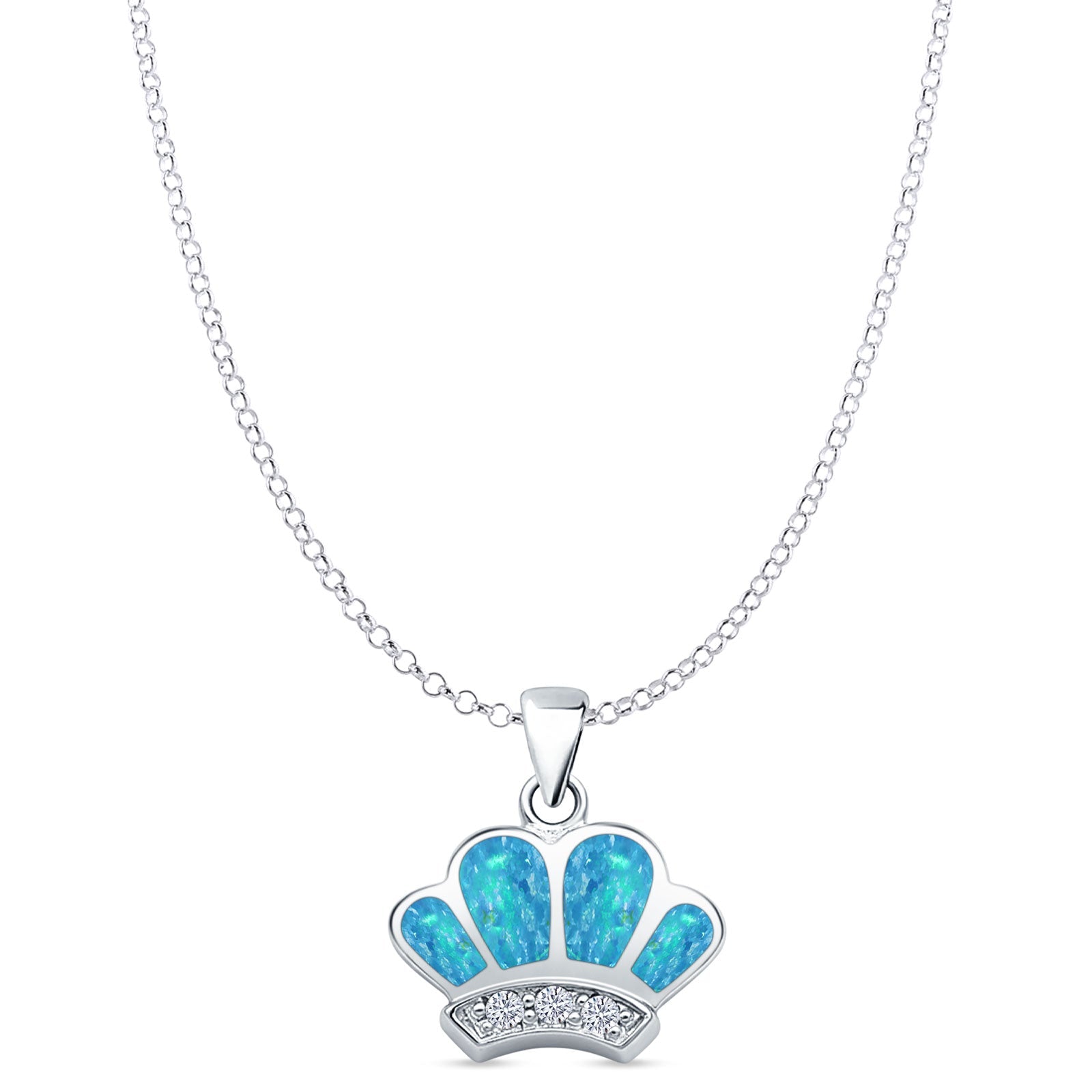 Style: Lab Created Blue Opal Crown Pendant Necklace