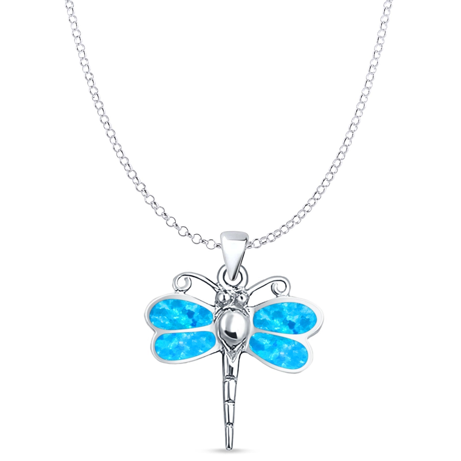 Style: Lab Created Blue Opal Dragonfly Pendant Necklace