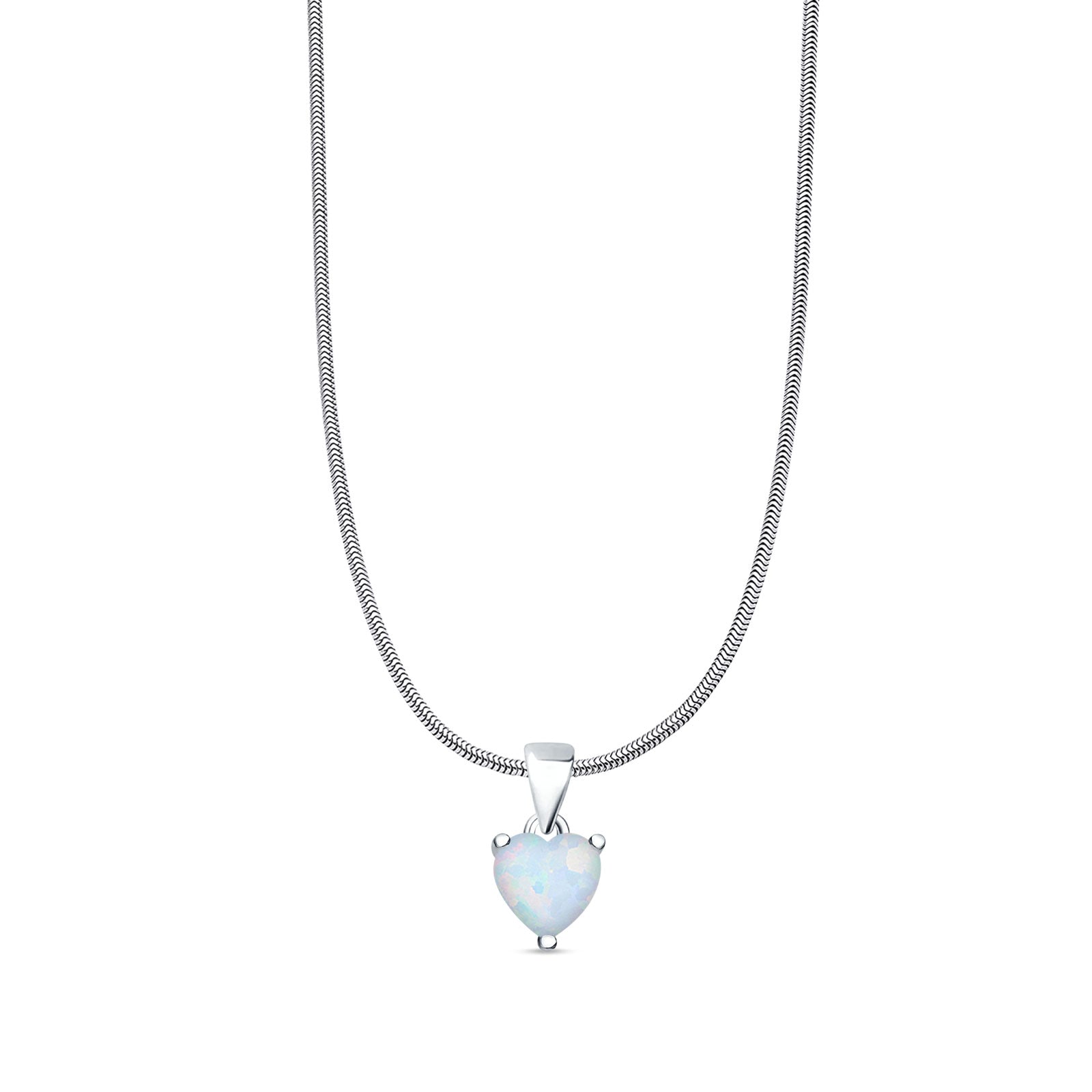 Lab Created White Opal Heart Pendant Snake Chain Necklace 925 Sterling Silver