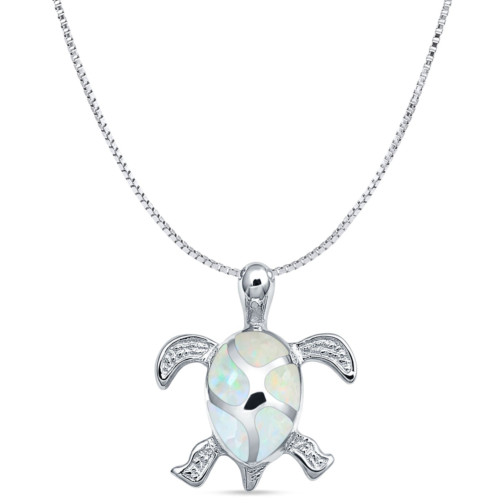 Style: Lab Created White Opal Turtle Pendant Necklace