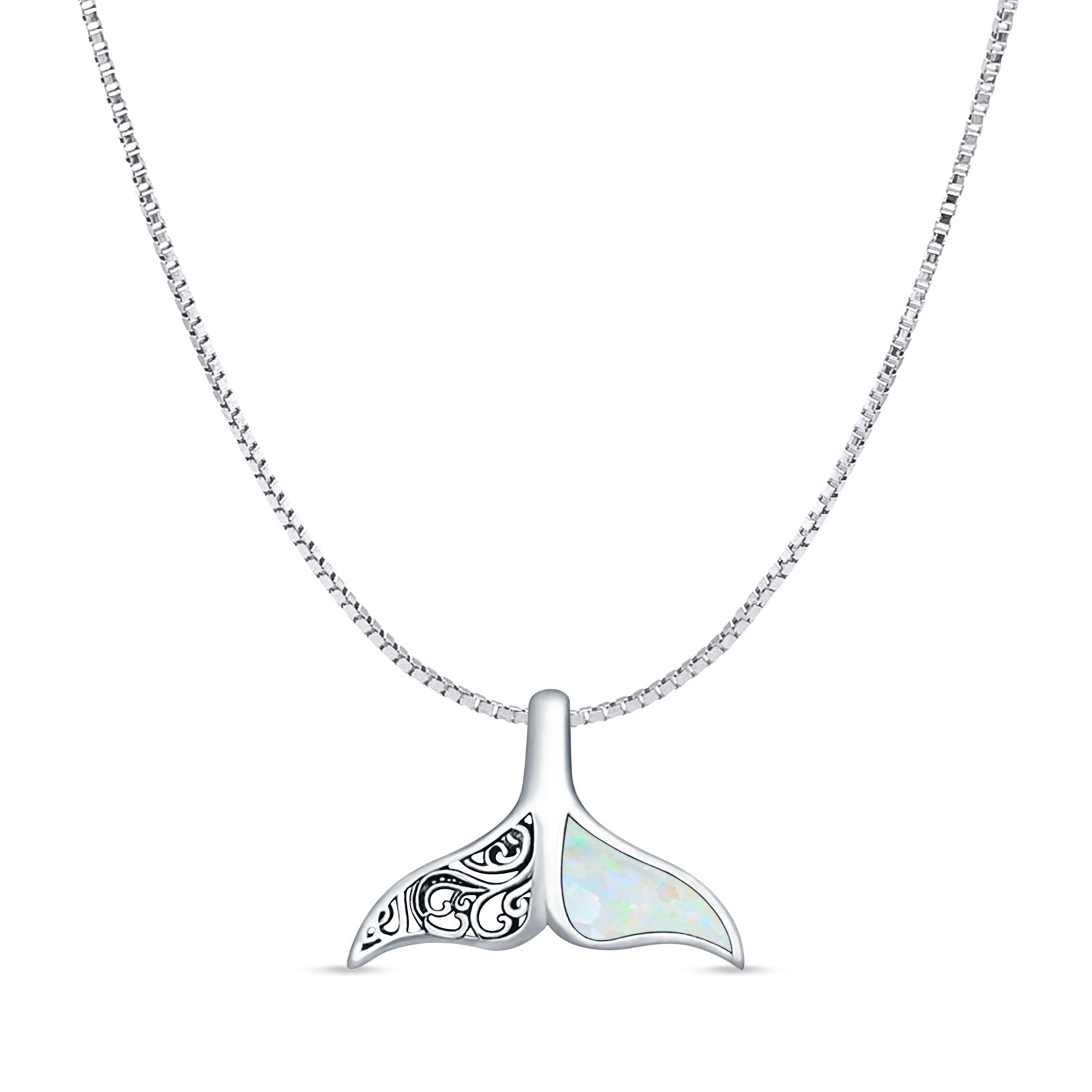 Style: Lab Created White Opal Whale Tail Pendant Necklace