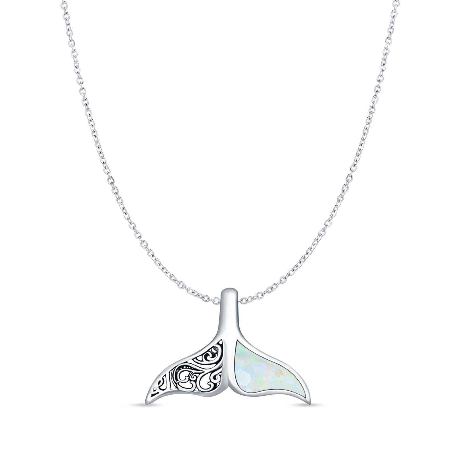 Style: Lab Created White Opal Whale Tail Pendant Necklace