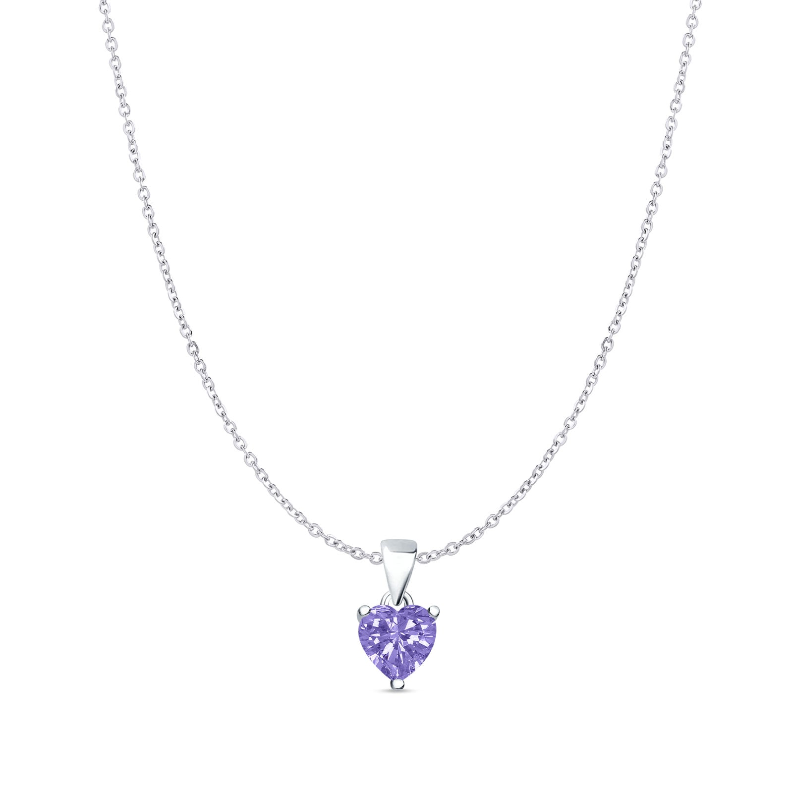 Lavender CZ Heart Pendant Cable Chain Necklace 925 Sterling Silver
