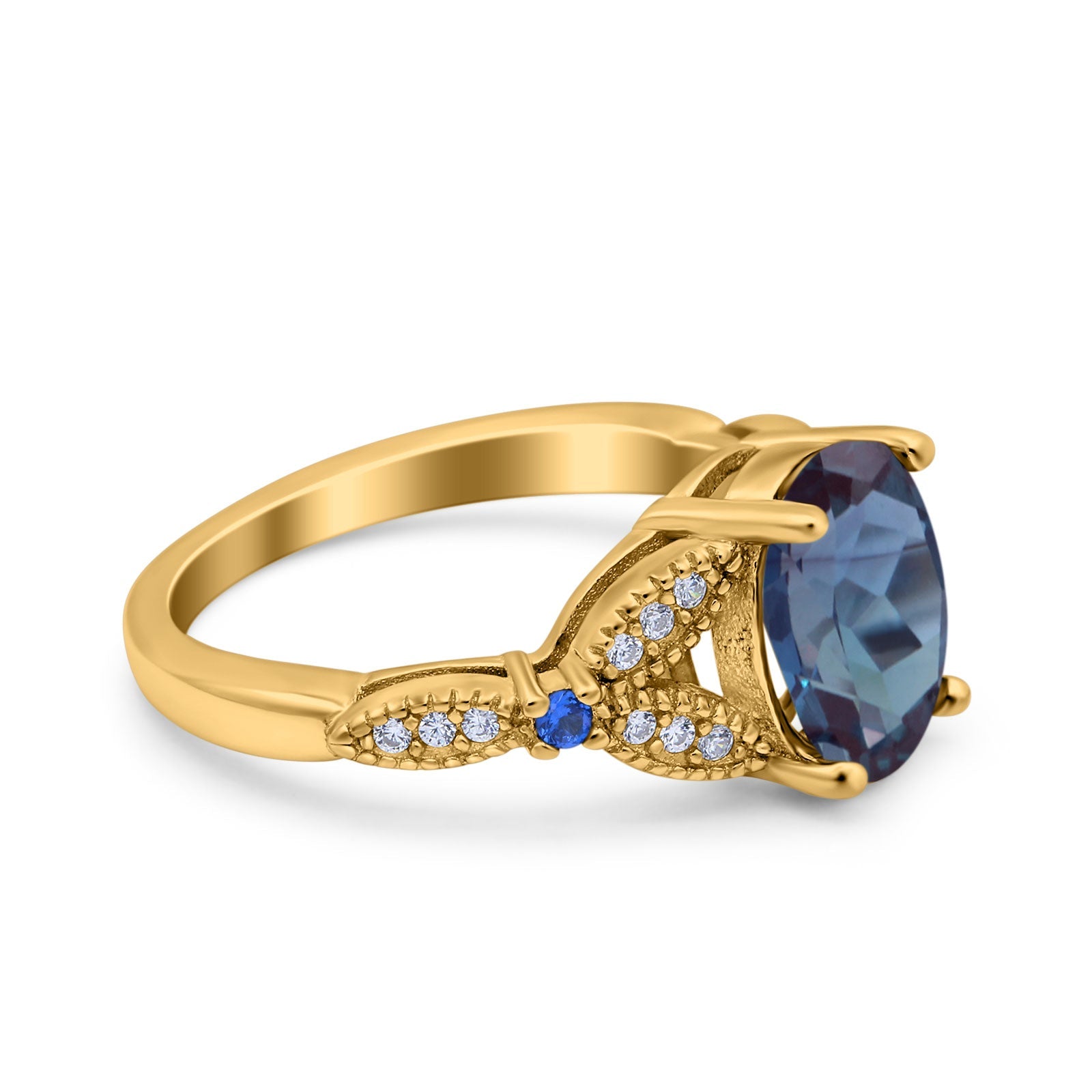 Side Stone: Blue Sapphire (CZ).