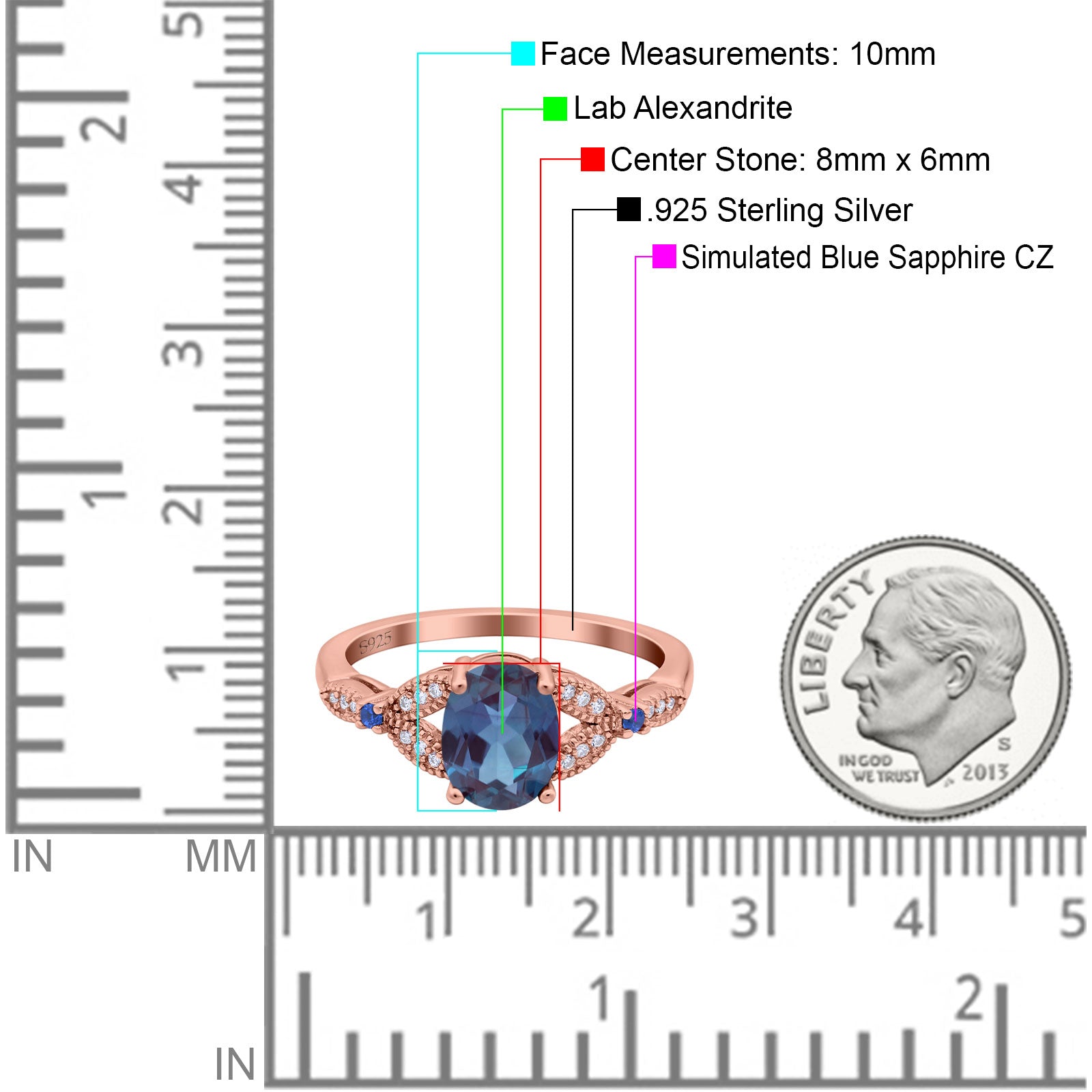 Lab Alexandrite Rose Tone Silver