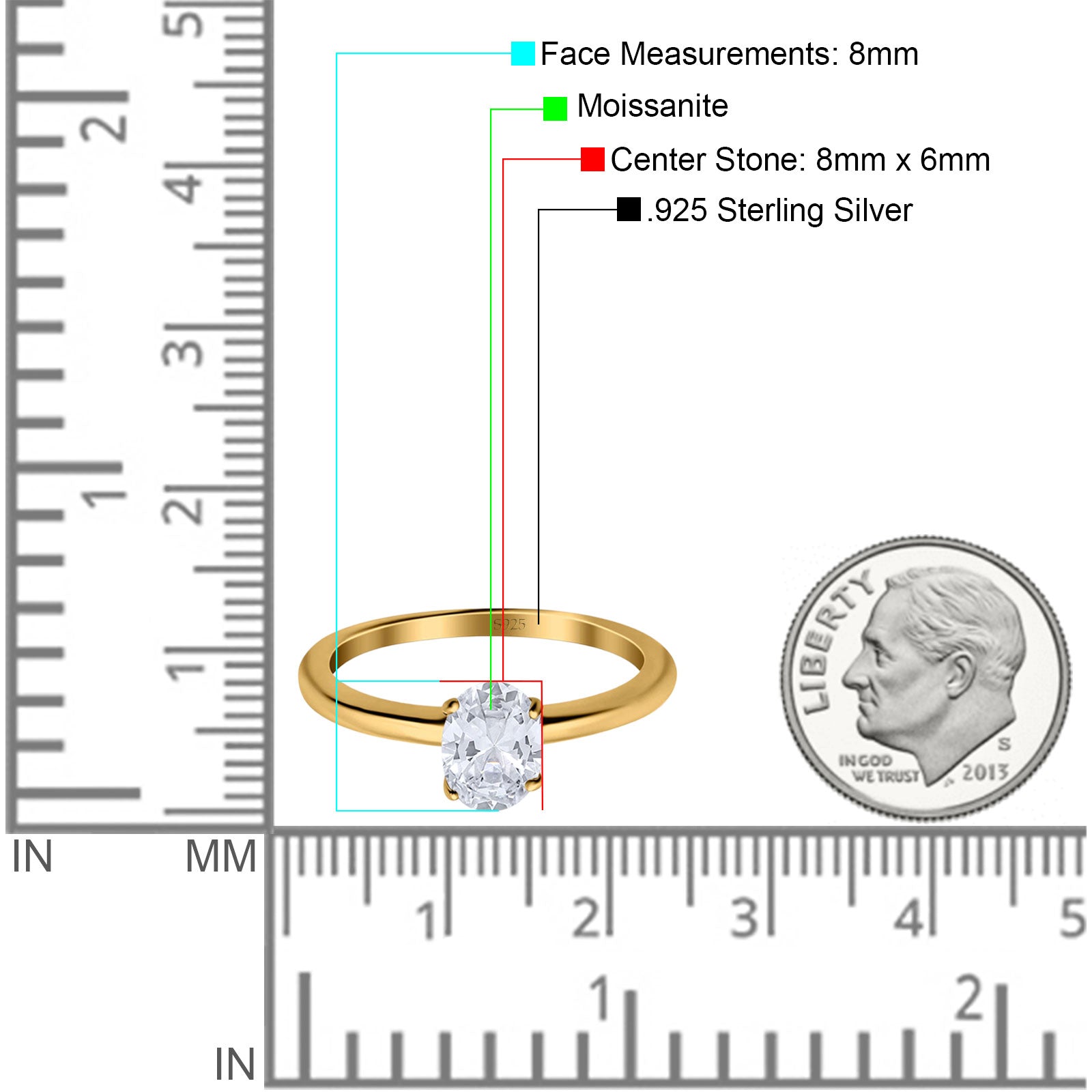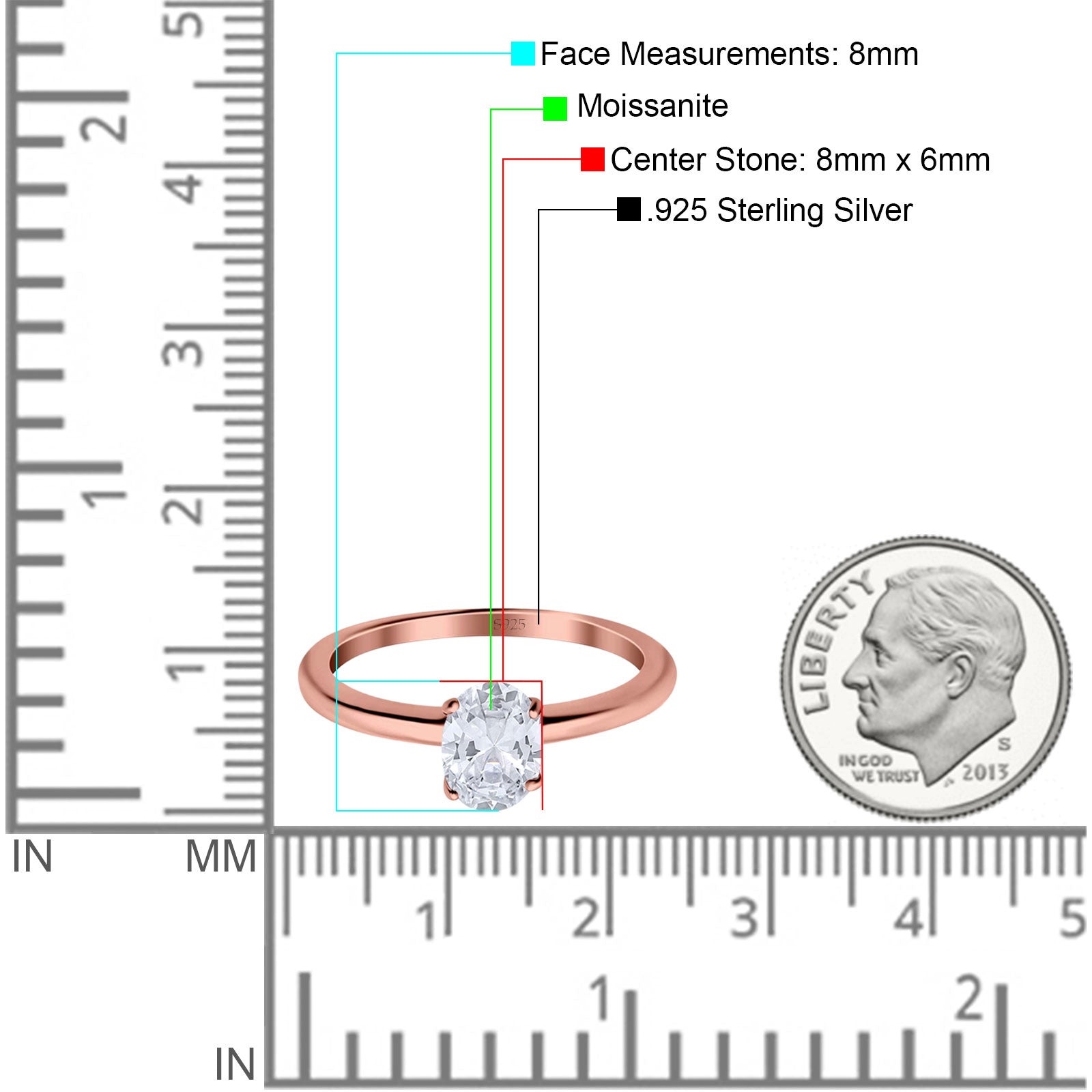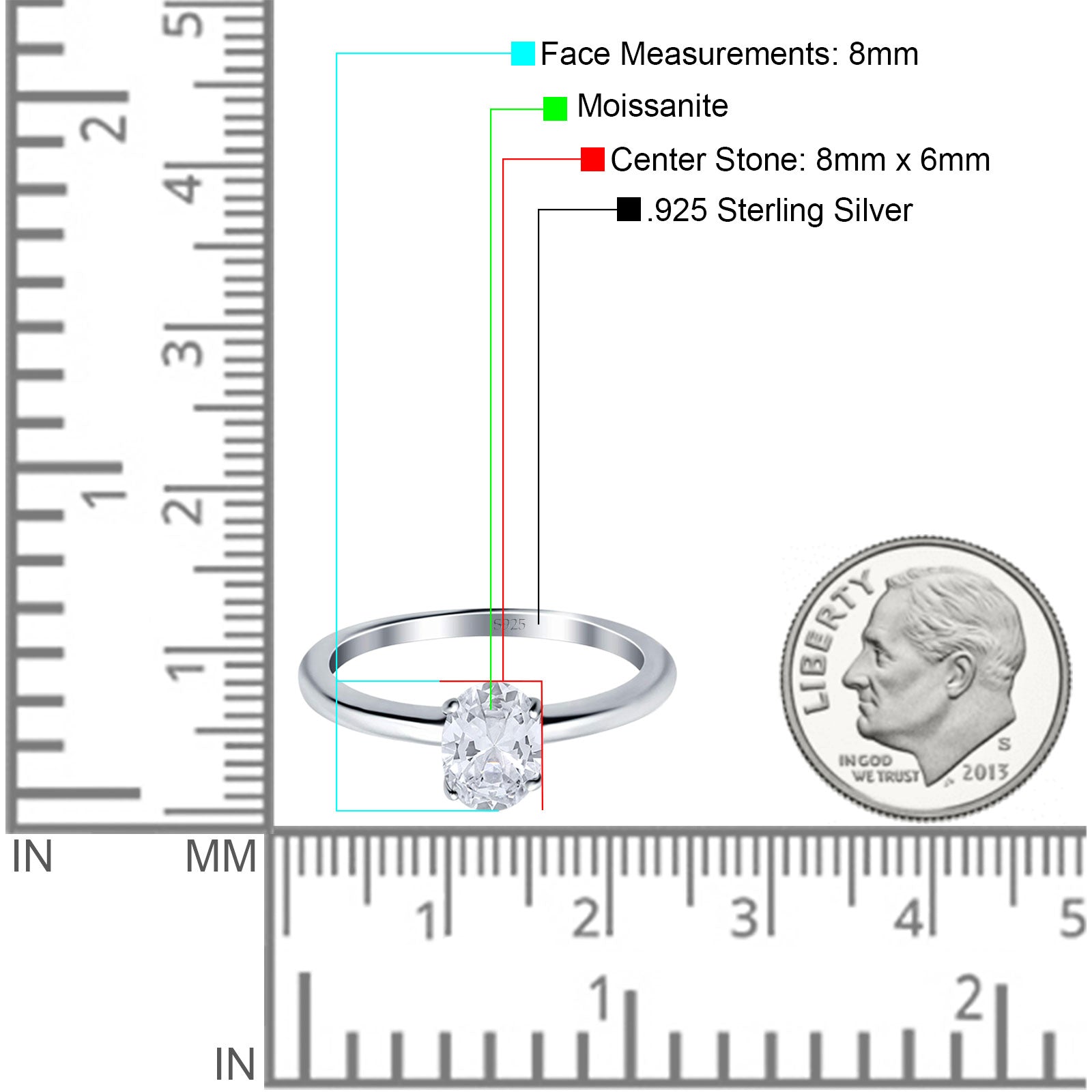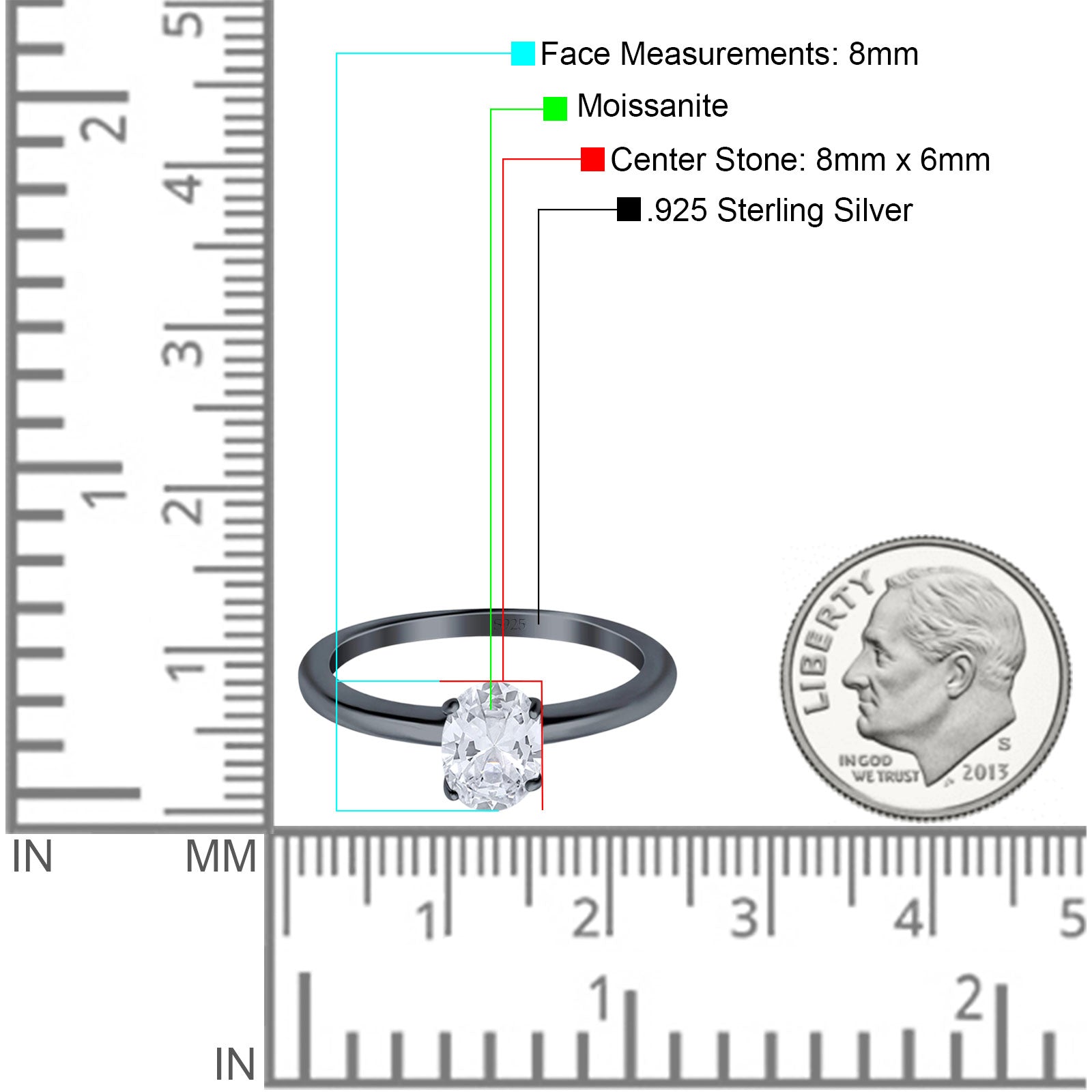 Center Stone Measurements:8mmX6mm.