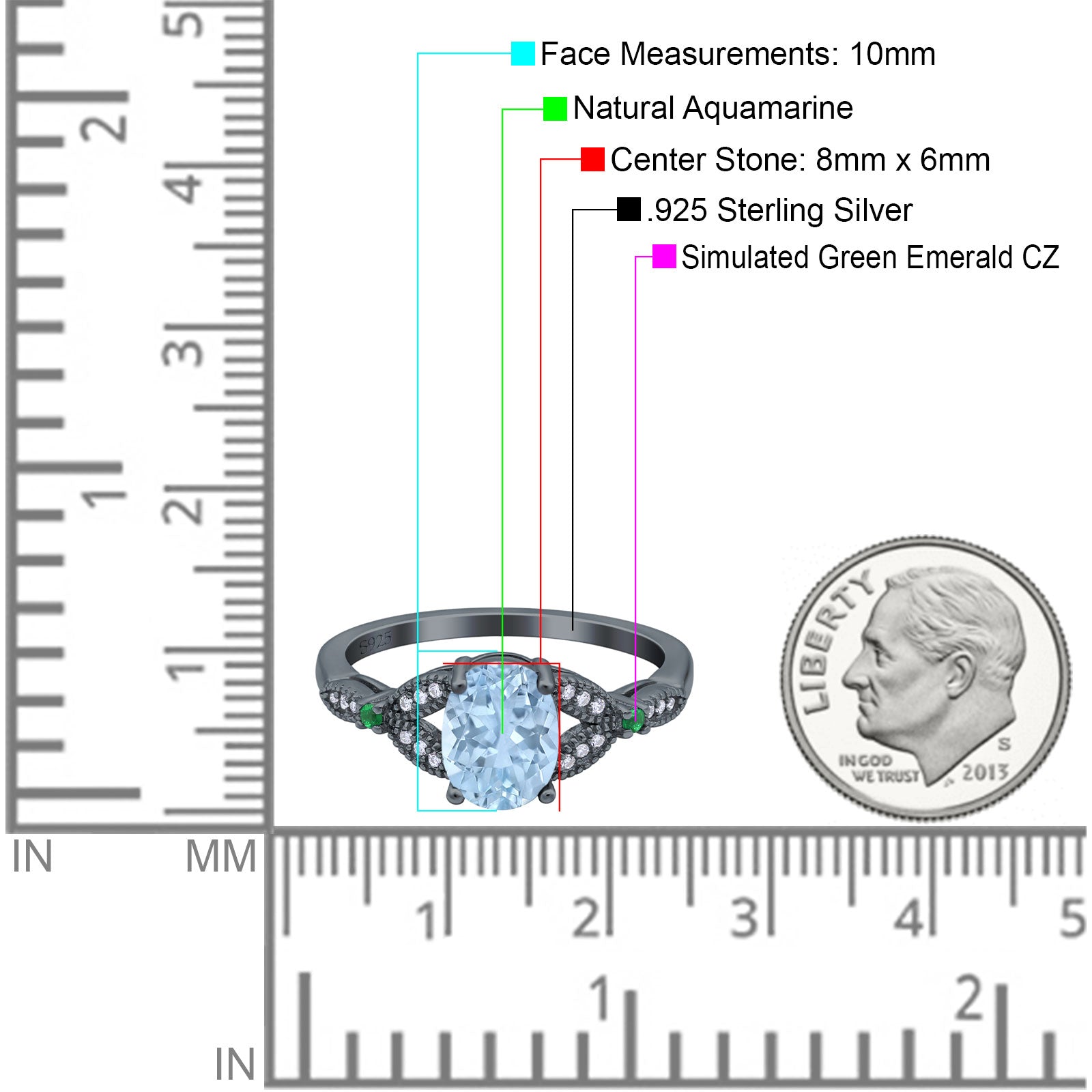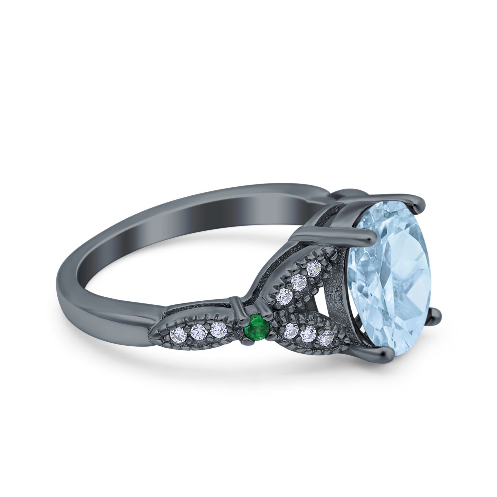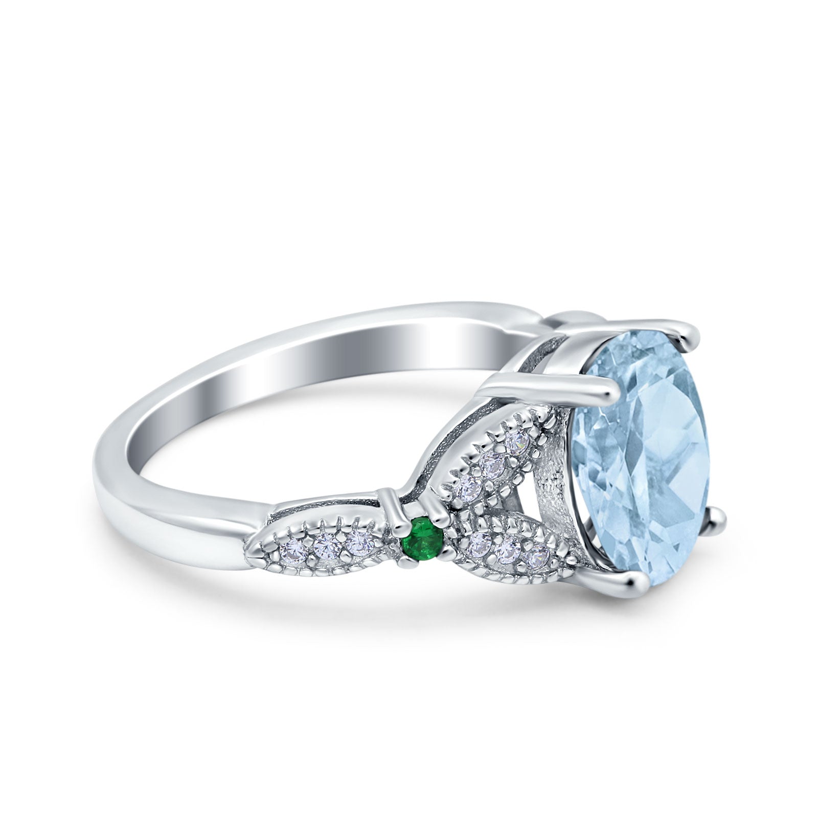 Oval Natural Aquamarine Leaf Design Beaded Ring 925 Sterling Silver