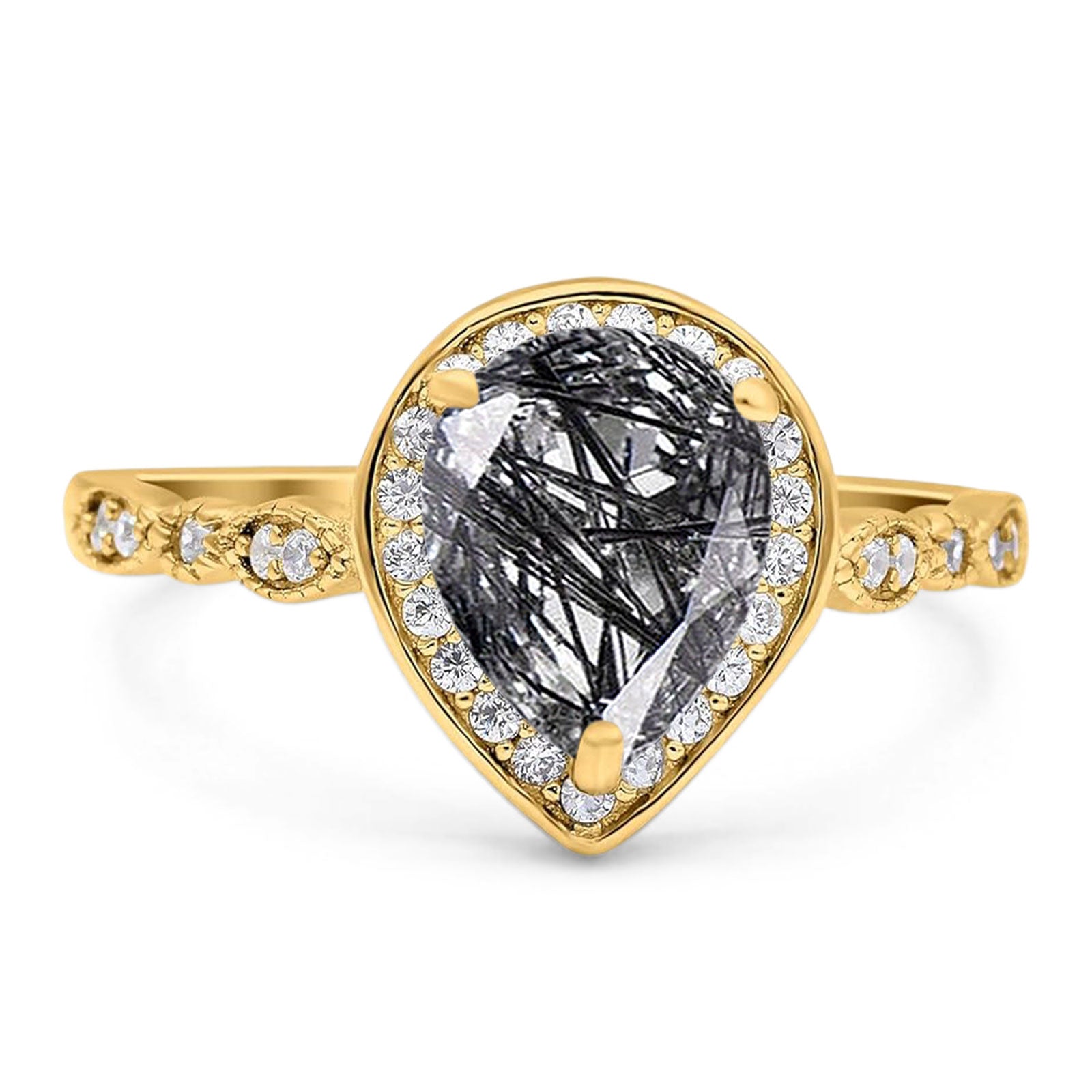 -Pear Teardrop Natural Rutilated Quartz Gemstone.