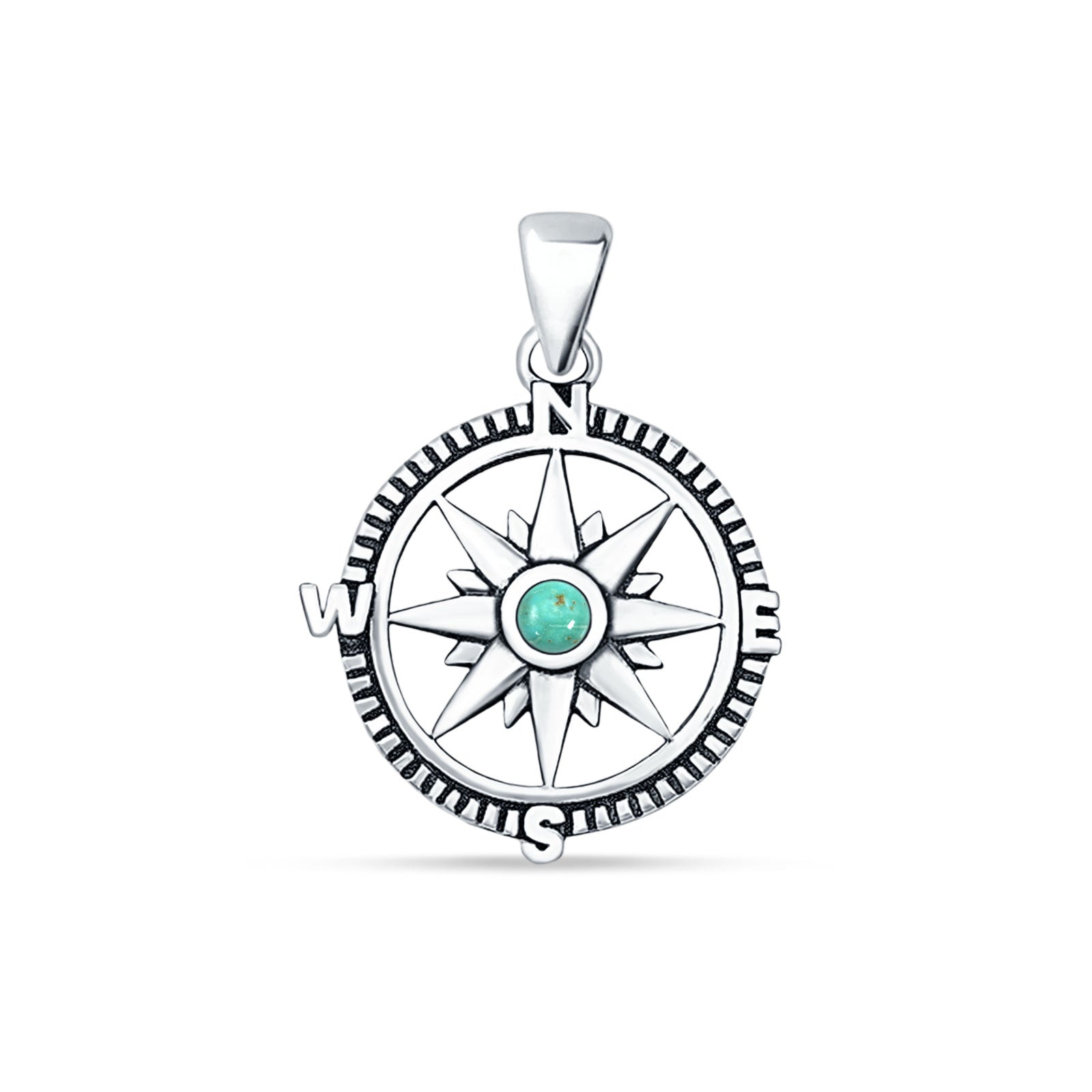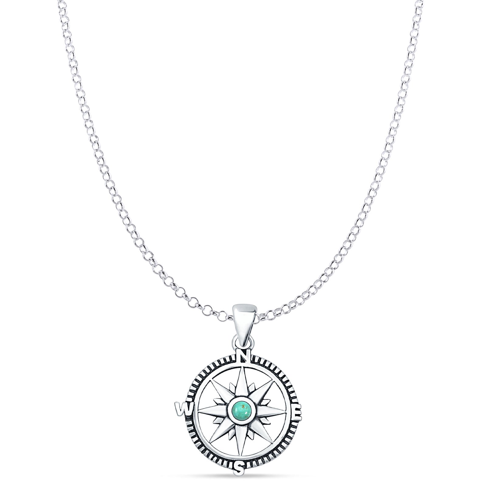 Turquoise Compass Pendant Rolo Chain Necklace 925 Sterling Silver