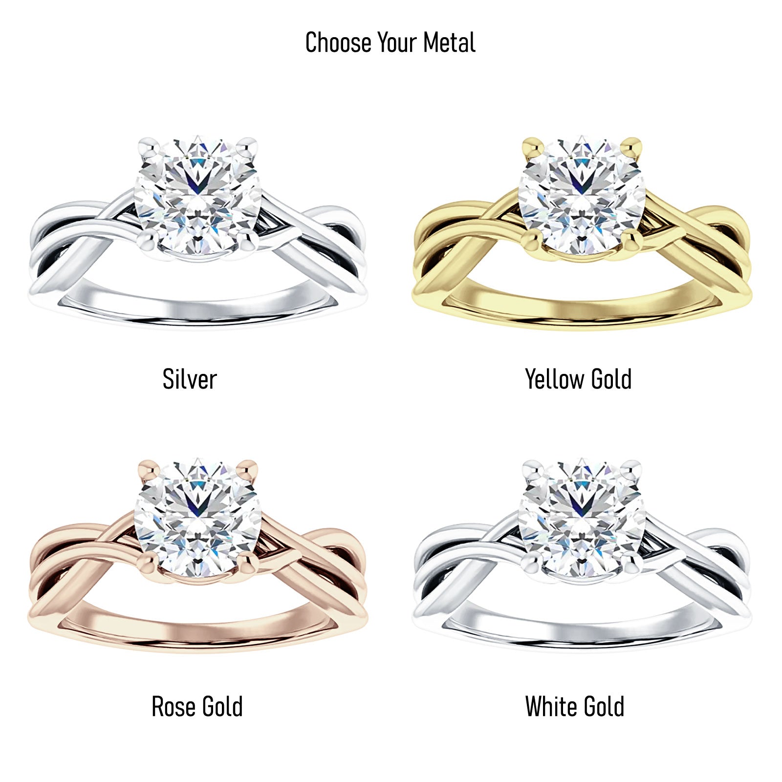 This lab grown diamond ring is available in three different carat weights and also comes in a choice of various metal types.(Tarnish Resistant Sterling Silver, 14K Gold & 18K Gold)