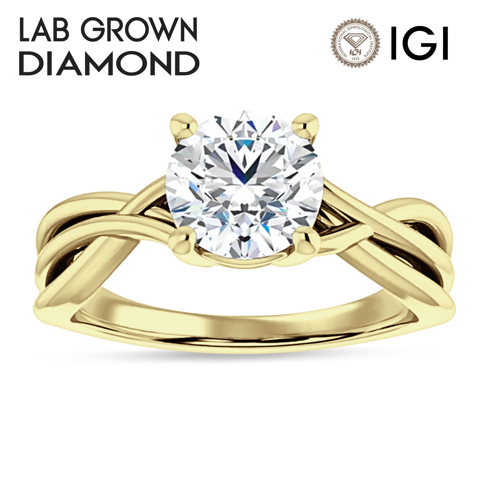 IGI Certified Round 3 Carat Lab Grown Diamond Twisted Solitaire Ring