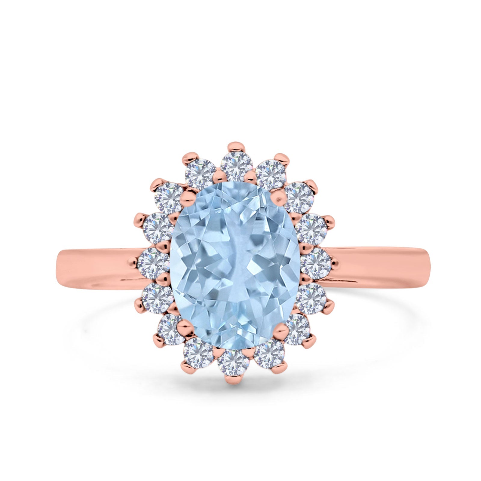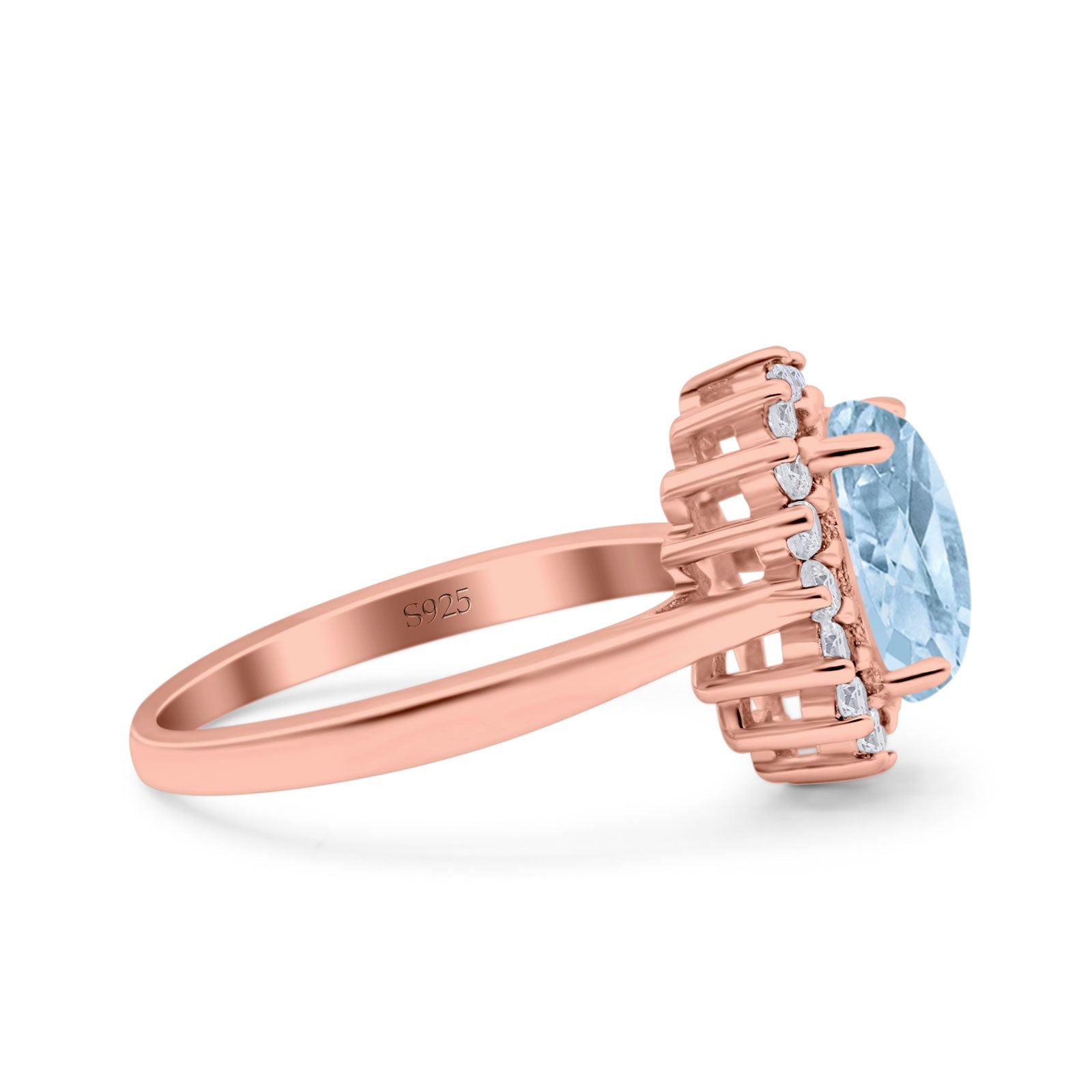 CZ & Blue Sapphire CZ Rose Tone Silver