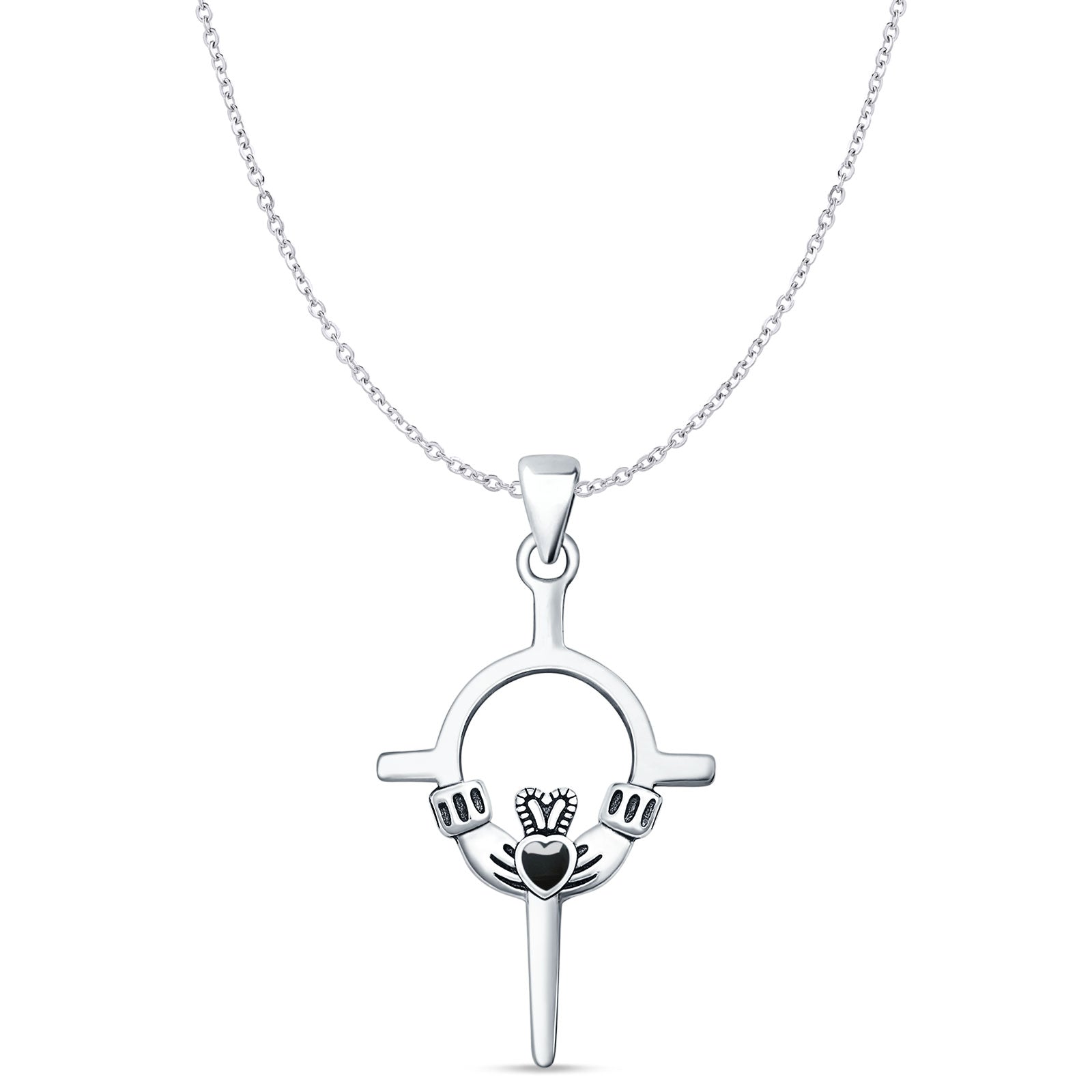 Black Onyx Claddagh Pendant Cable Chain Necklace 925 Sterling Silver