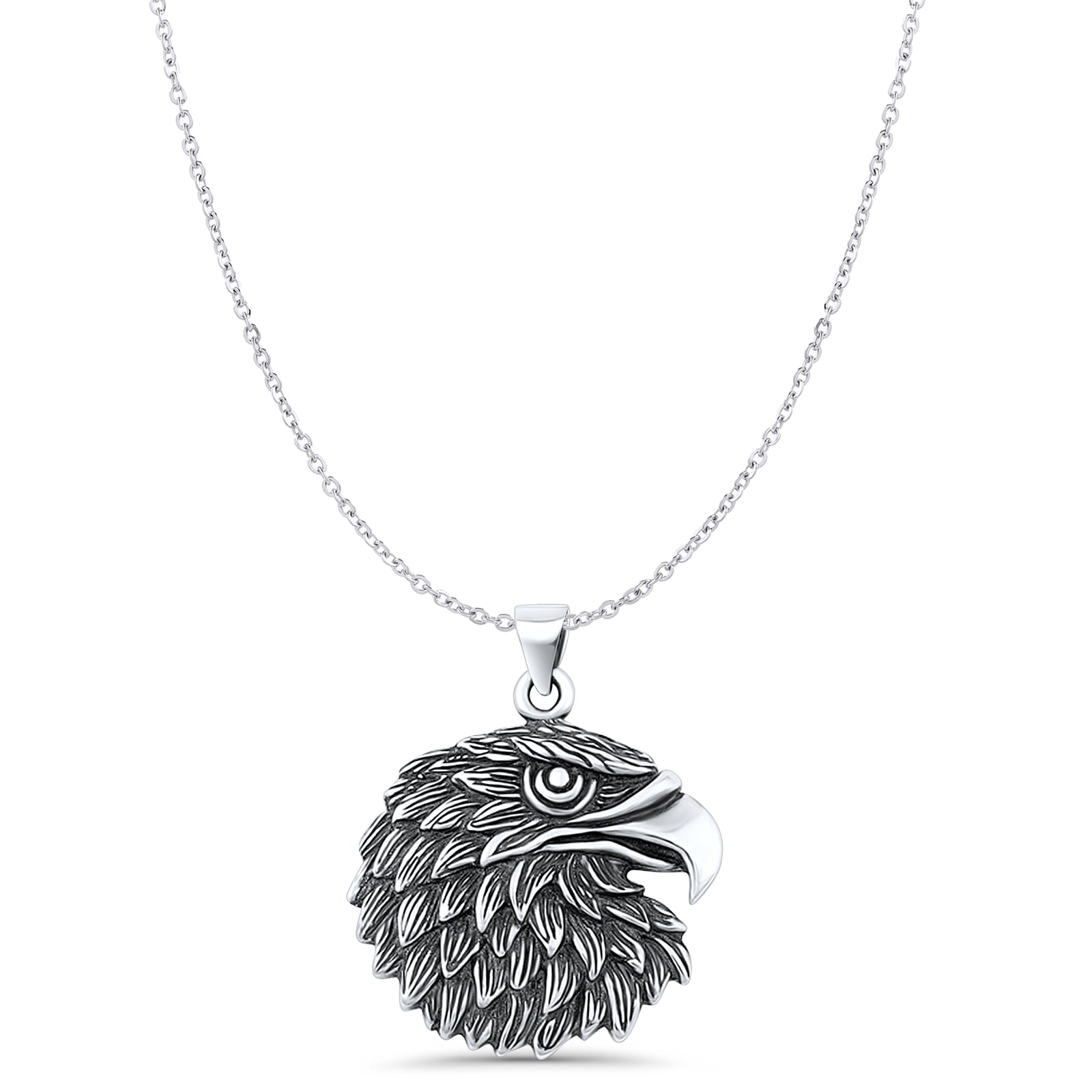 Eagle Head Charm Pendant Cable Chain Necklace Oxidized 925 Sterling Silver