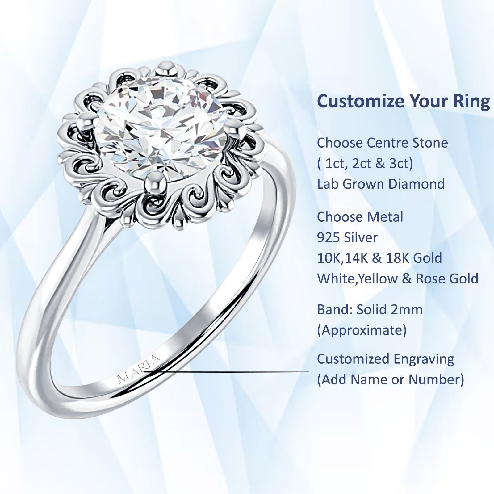 IGI Certified Round 3 Carat Lab Grown Diamond Floral Solitaire Ring