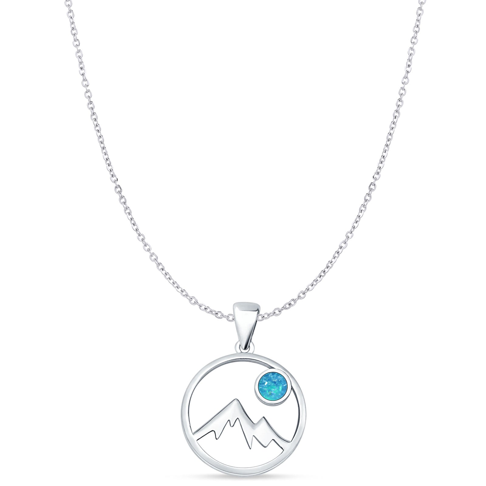 Style: Lab Created Blue Opal Mountains & Moon Pendant Necklace