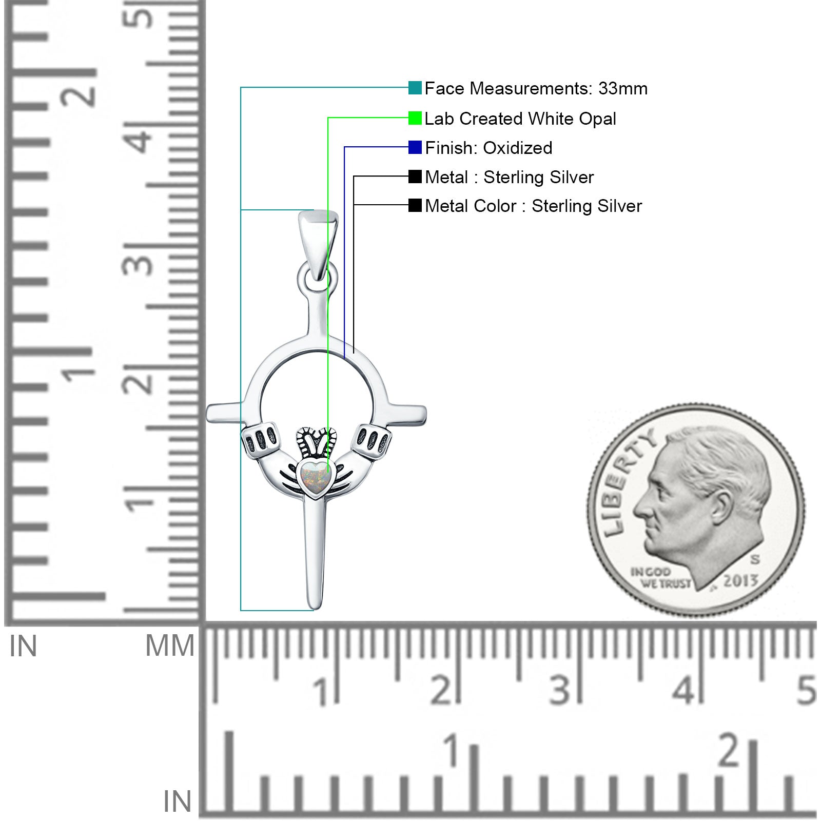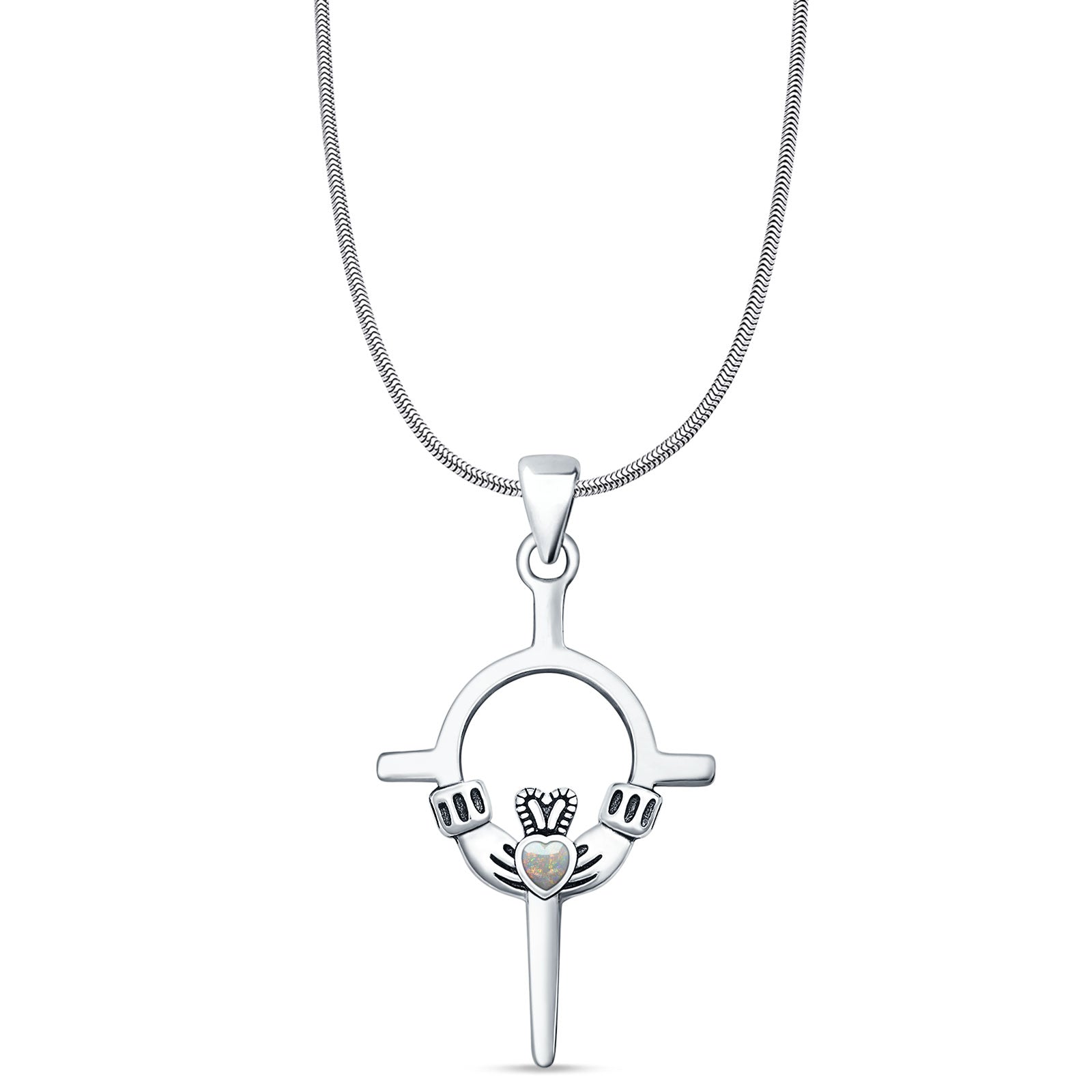 Style: Lab Created White Opal Claddagh Pendant Necklace