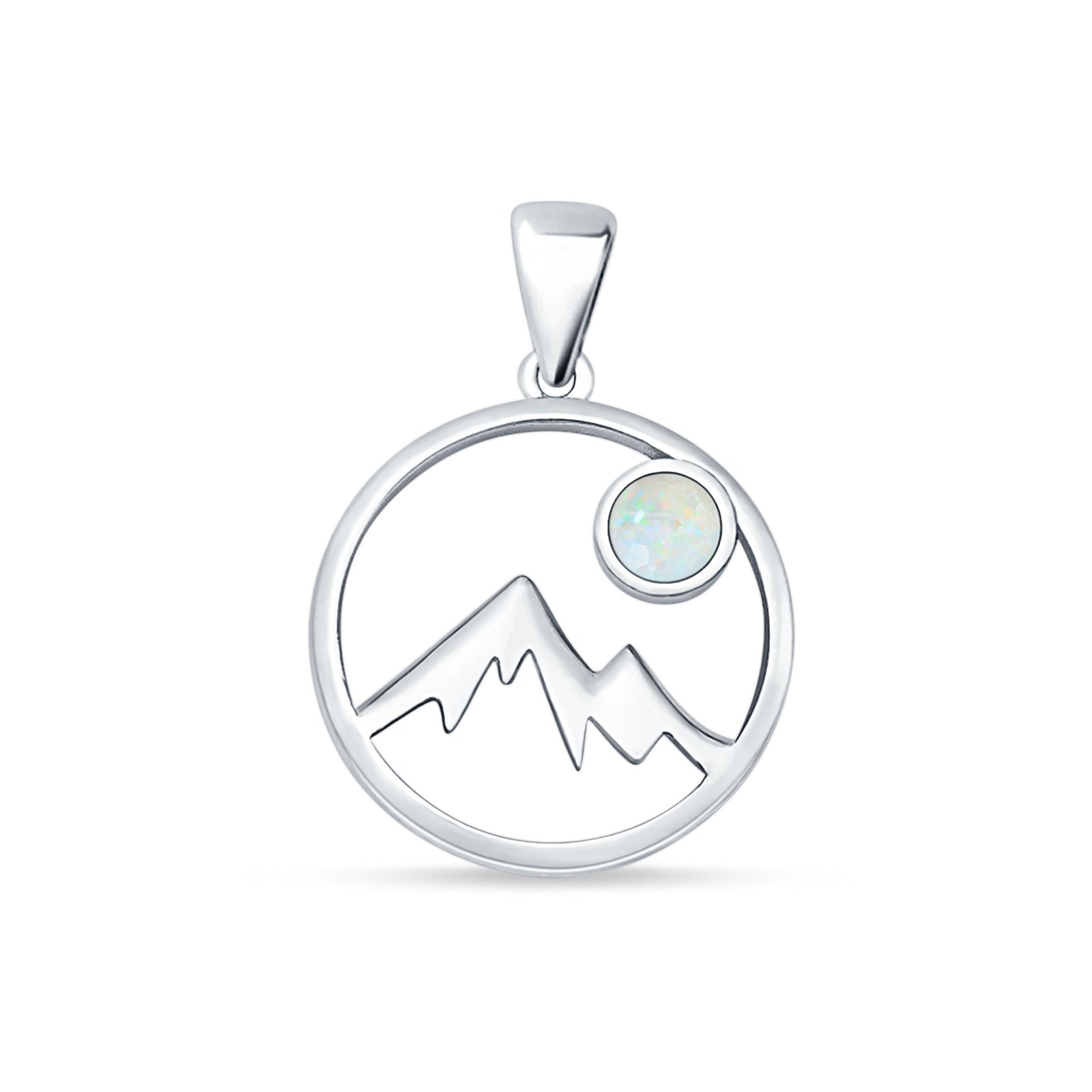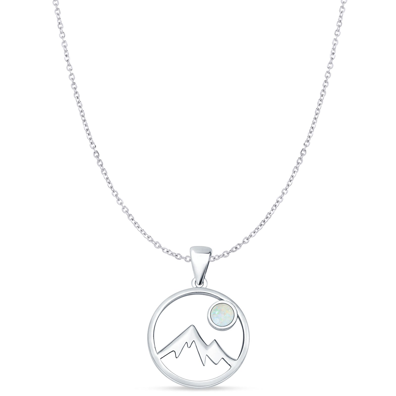 Style: Lab Created White Opal Mountains & Moon Pendant Necklace