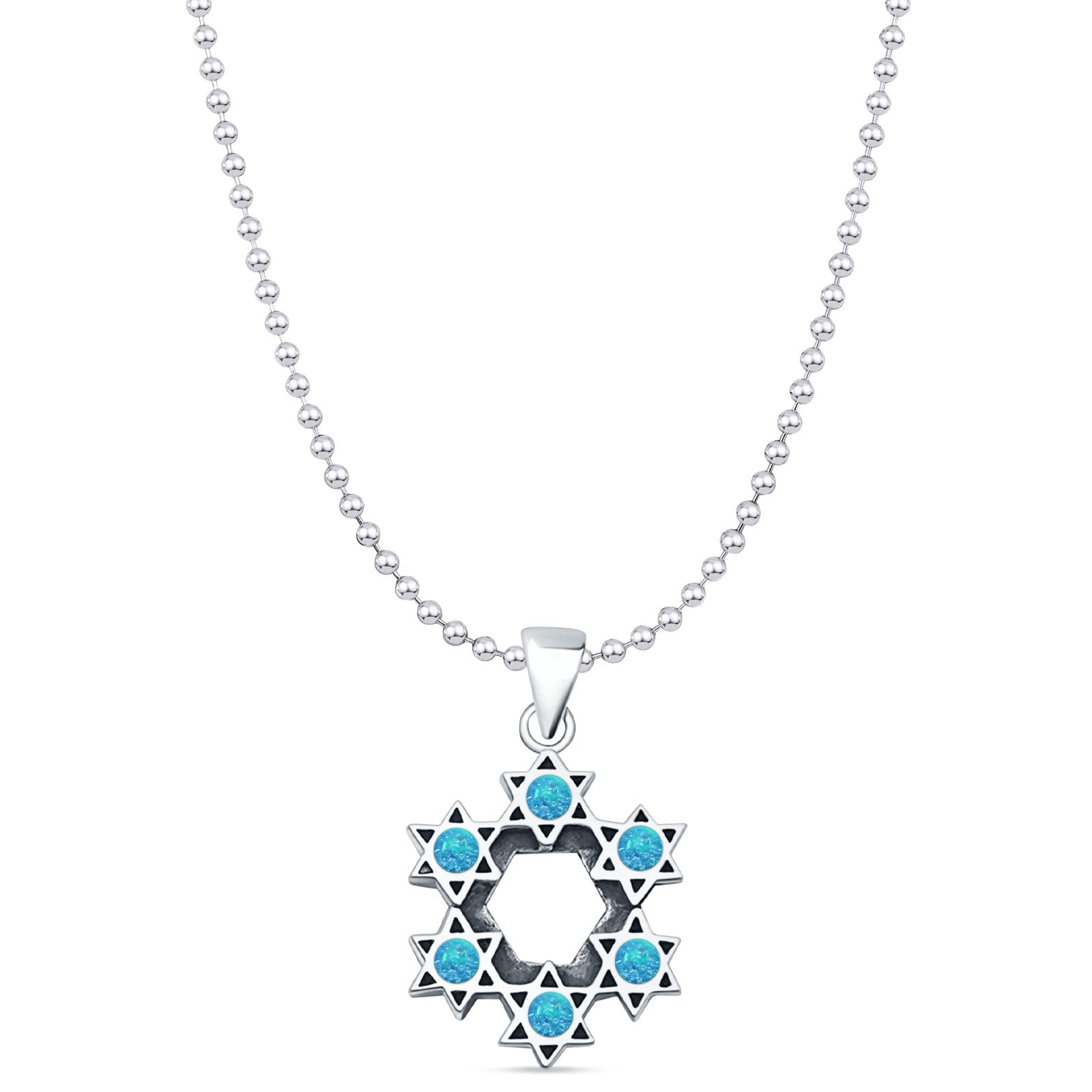 Style: Lab Created Blue Opal Stars Pendant Necklace