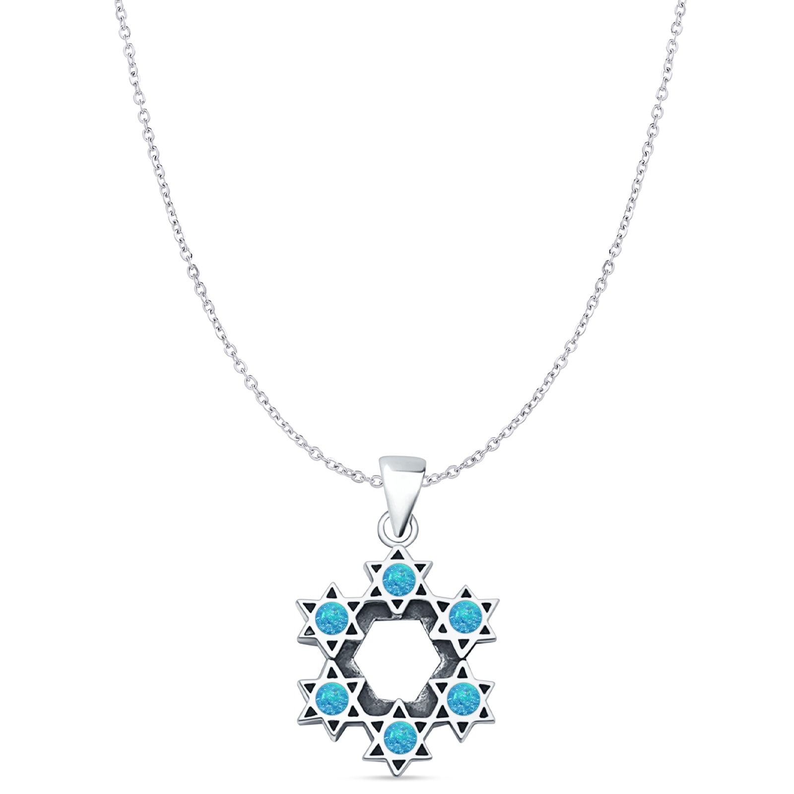 Style: Lab Created Blue Opal Stars Pendant Necklace