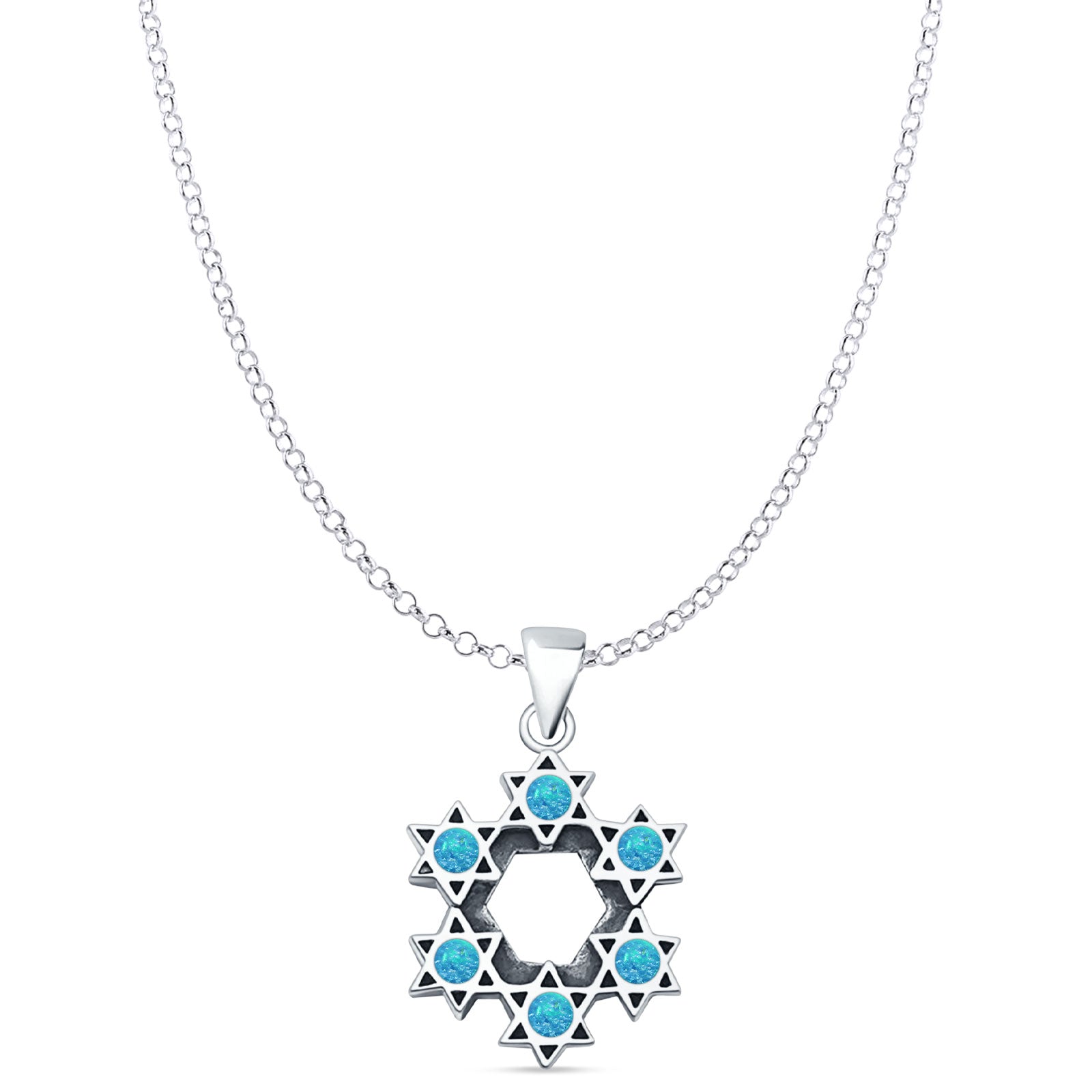 Style: Lab Created Blue Opal Stars Pendant Necklace