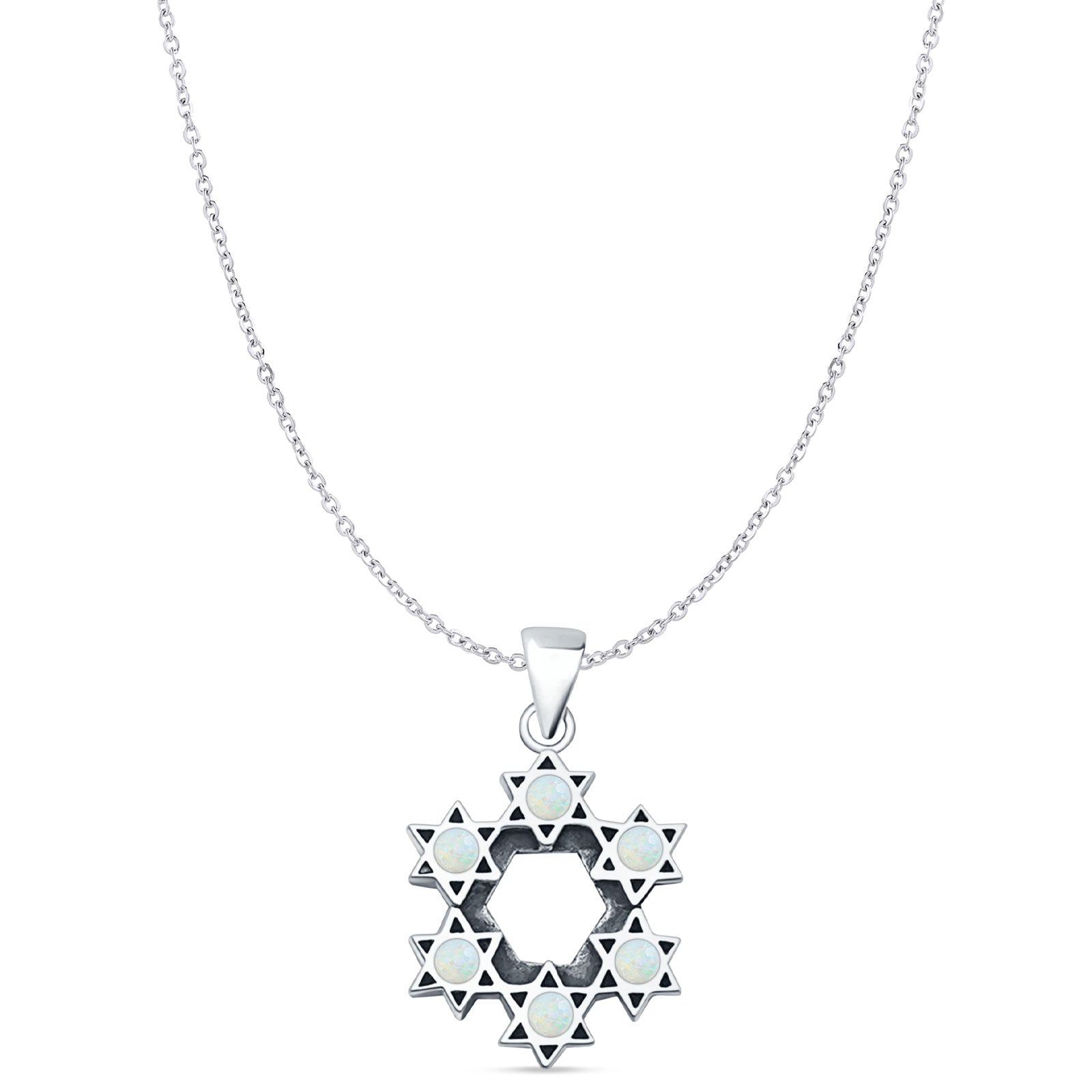 Style: Lab Created White Opal Stars Pendant Necklace