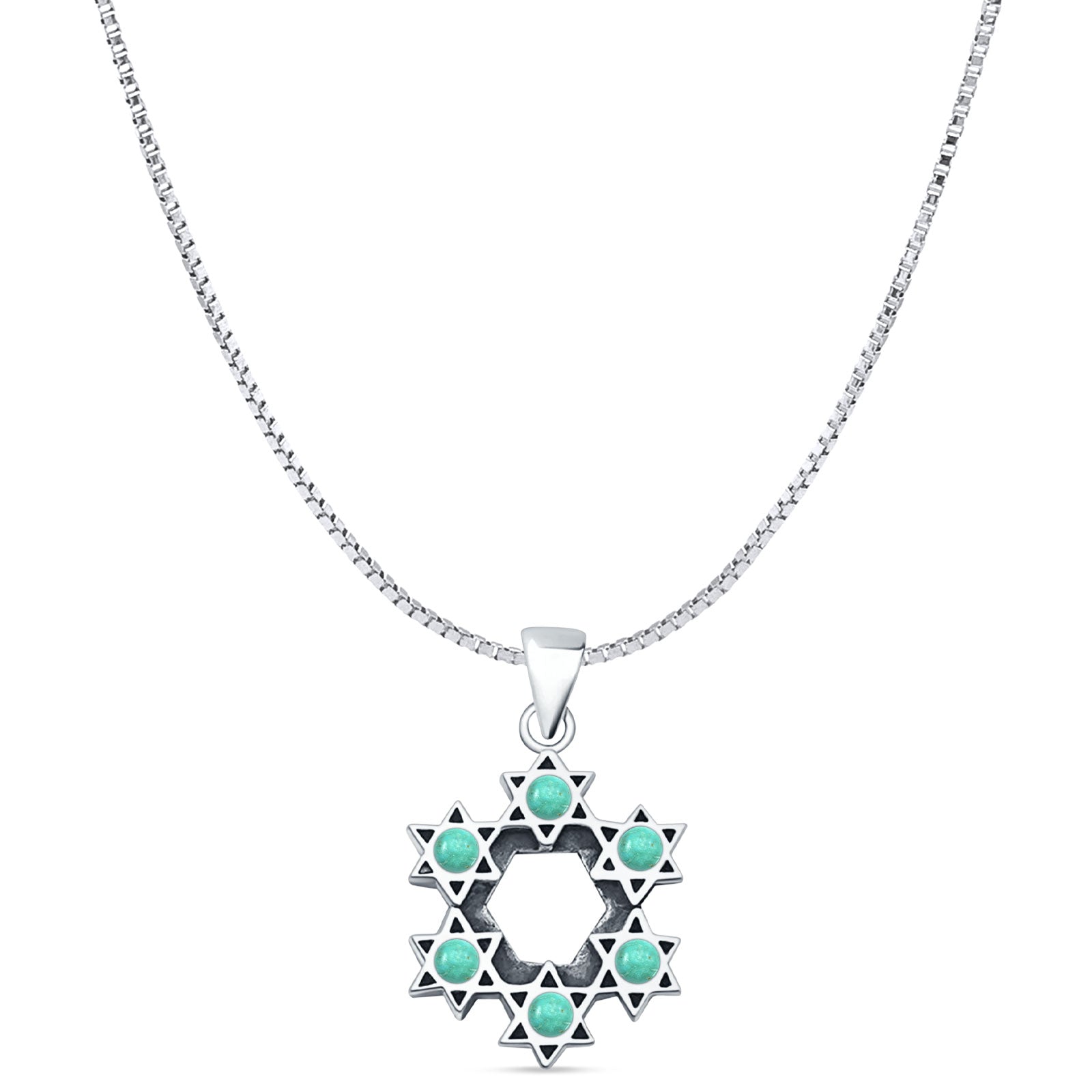 Round Turquoise Stars Pendant Box Chain Necklace Oxidized 925 Sterling Silver