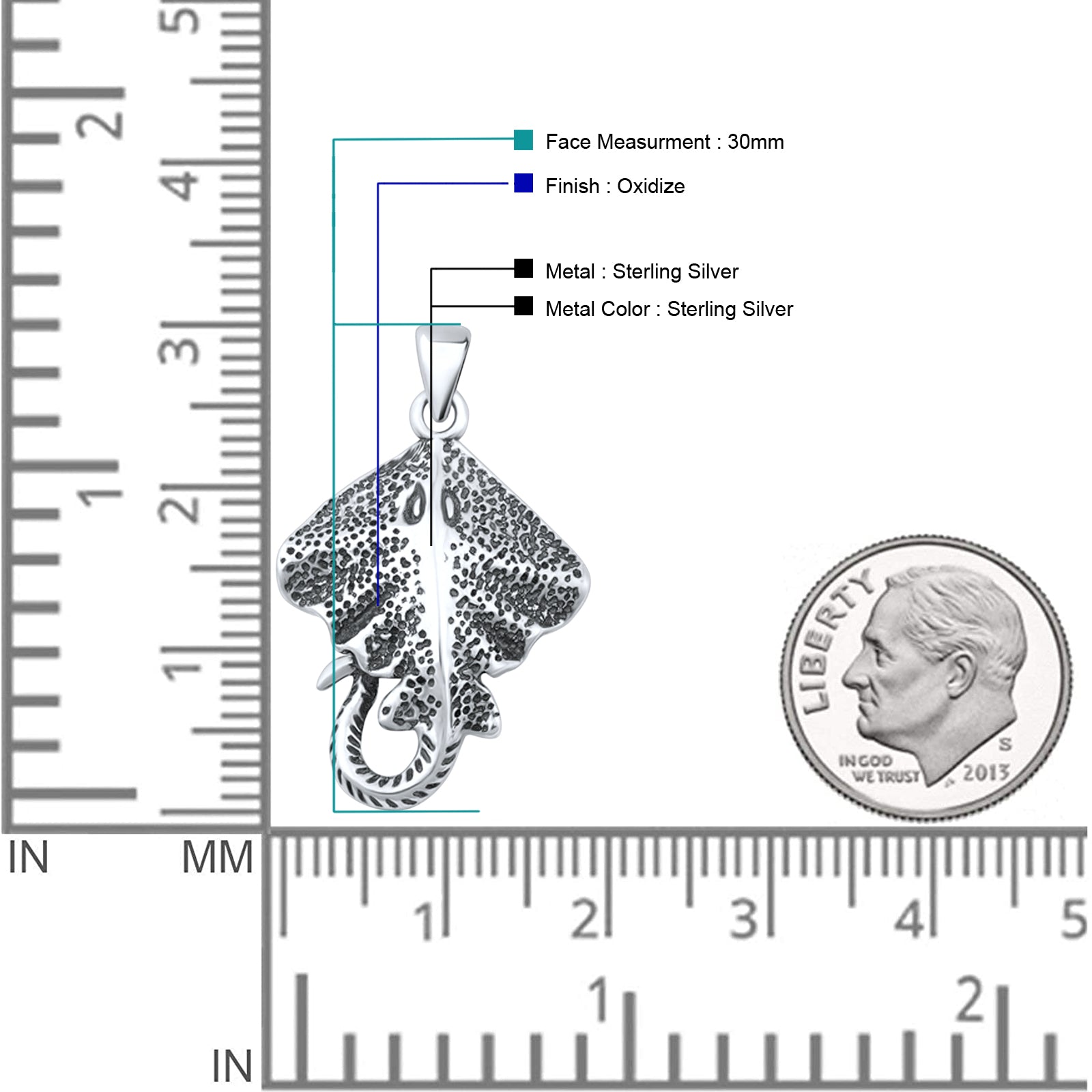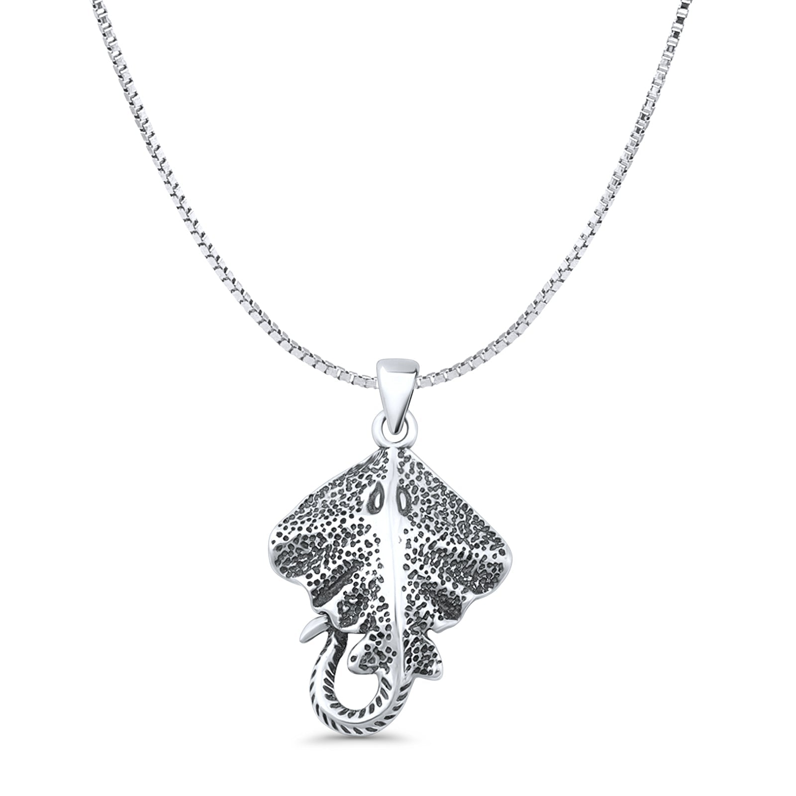 Sting Ray Charm Pendant Box Chain Necklace Oxidized 925 Sterling Silver