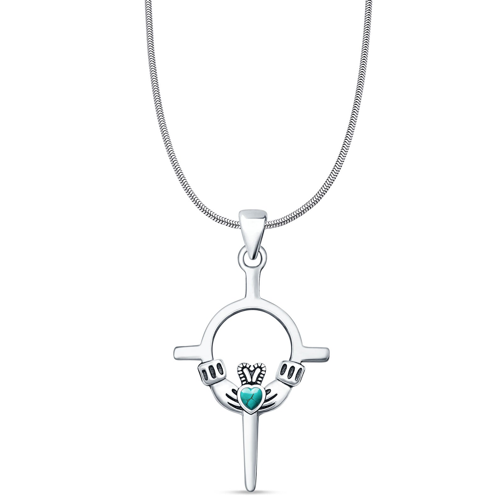 Turquoise Claddagh Pendant Snake Chain Necklace 925 Sterling Silver