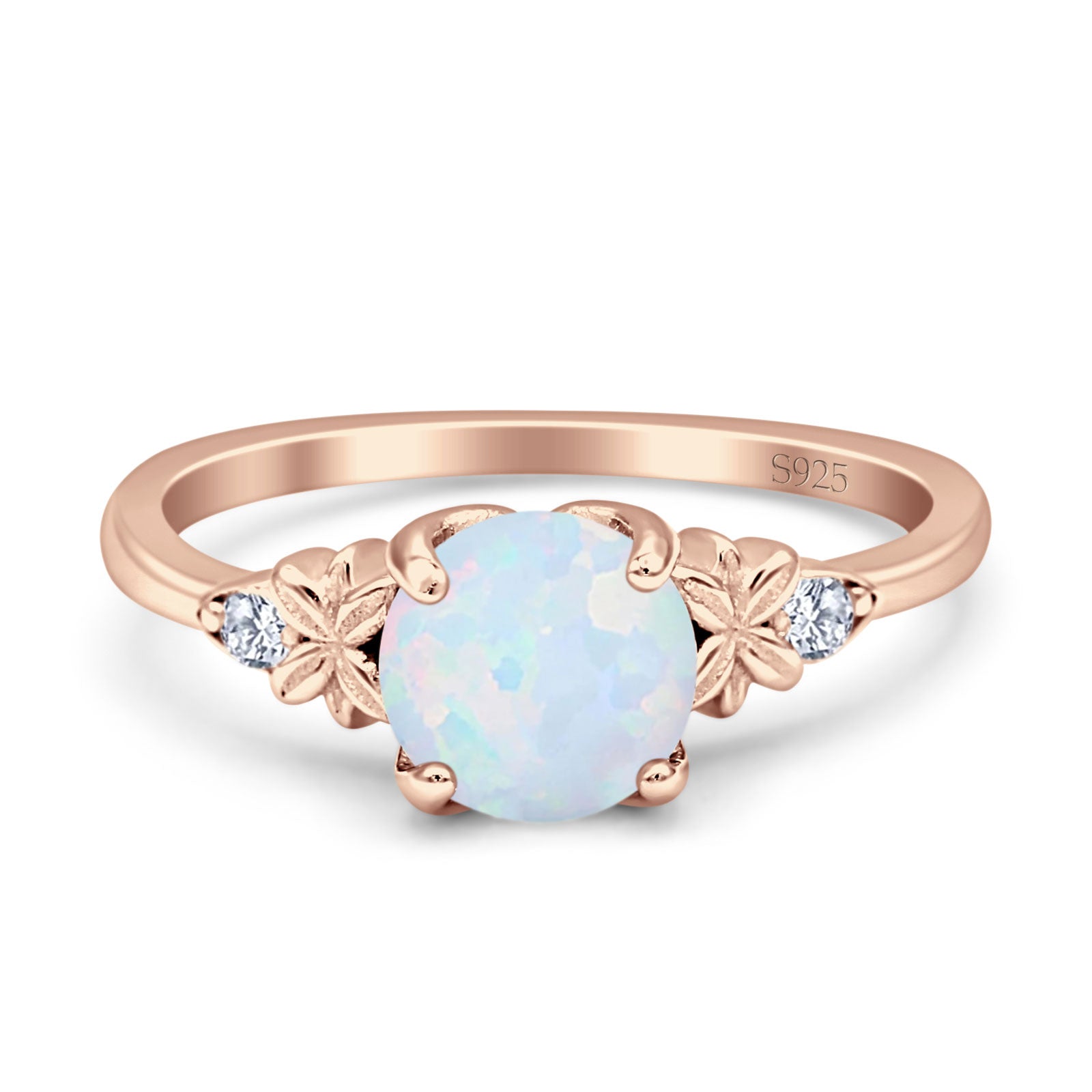 Art Deco Round Lab Created White Opal Floral Ring 925 Sterling Silver