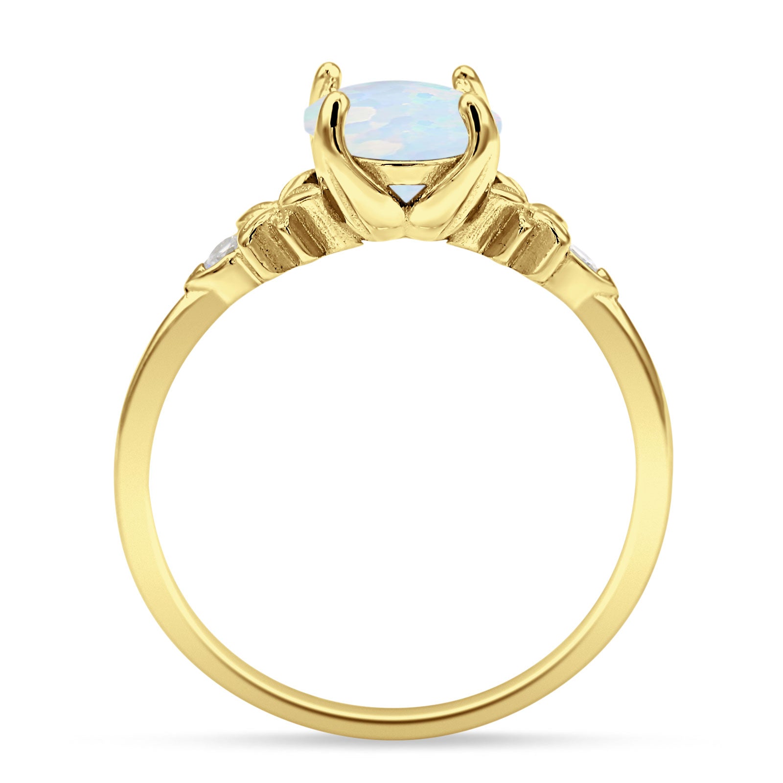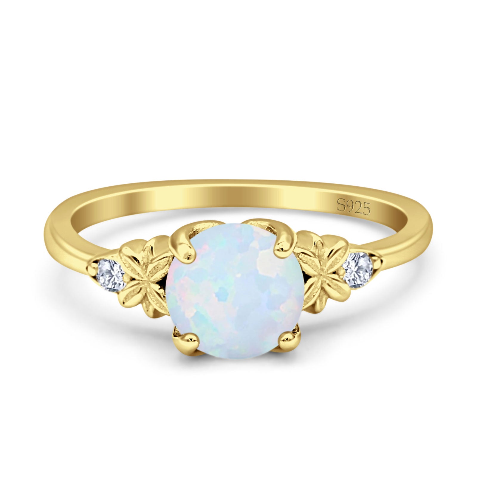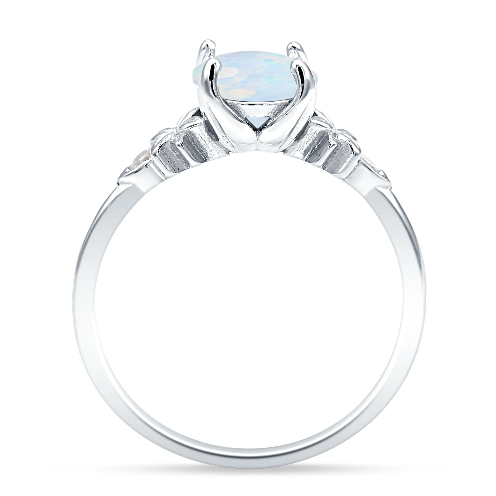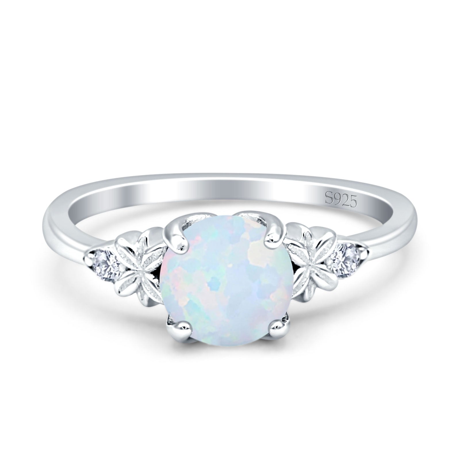 Ring Design: Round Lab Created White Opal Floral Ring.