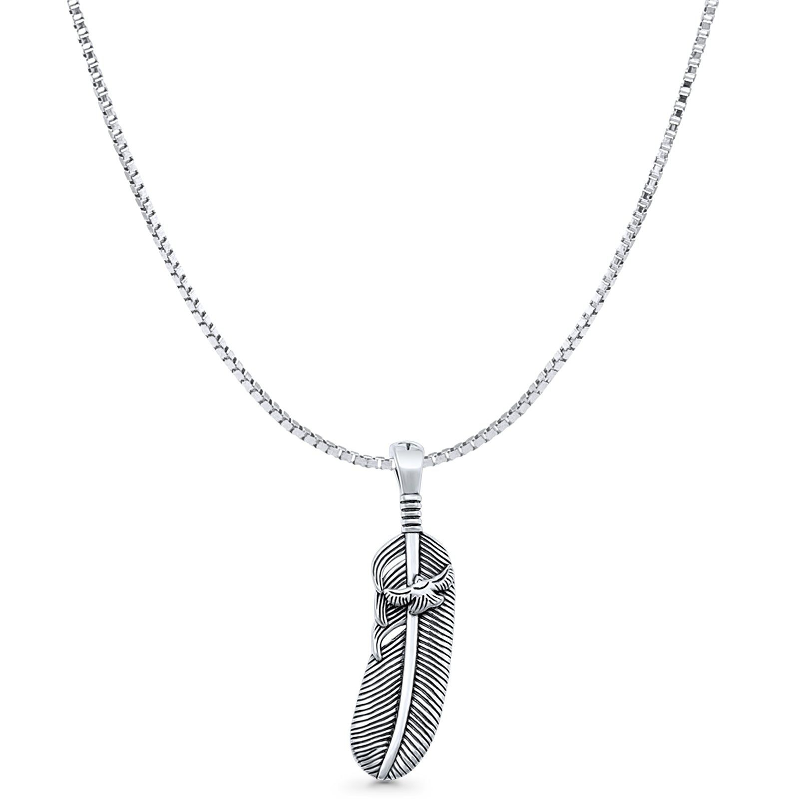 Feather & Bird Pendant Box Chain Necklace Oxidized 925 Sterling Silver