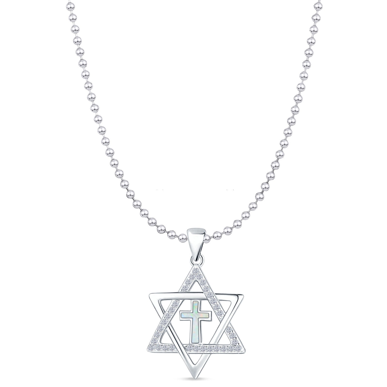 Style: Lab Created White Opal & CZ Star Of David & Cross Pendant Necklace