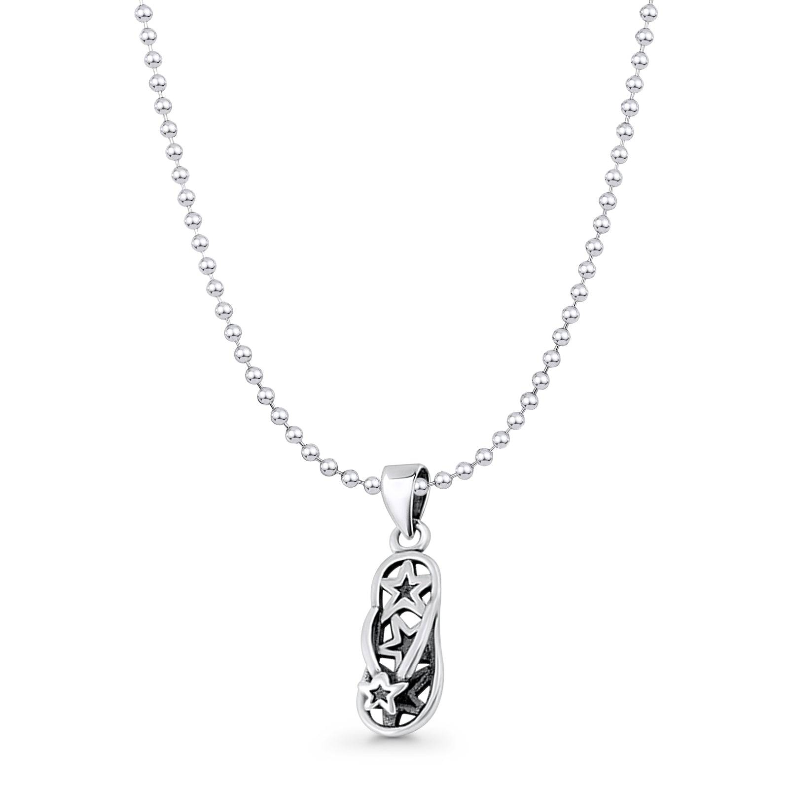 Starfish Sandal Pendant Bead Chain Necklace Oxidized 925 Sterling Silver
