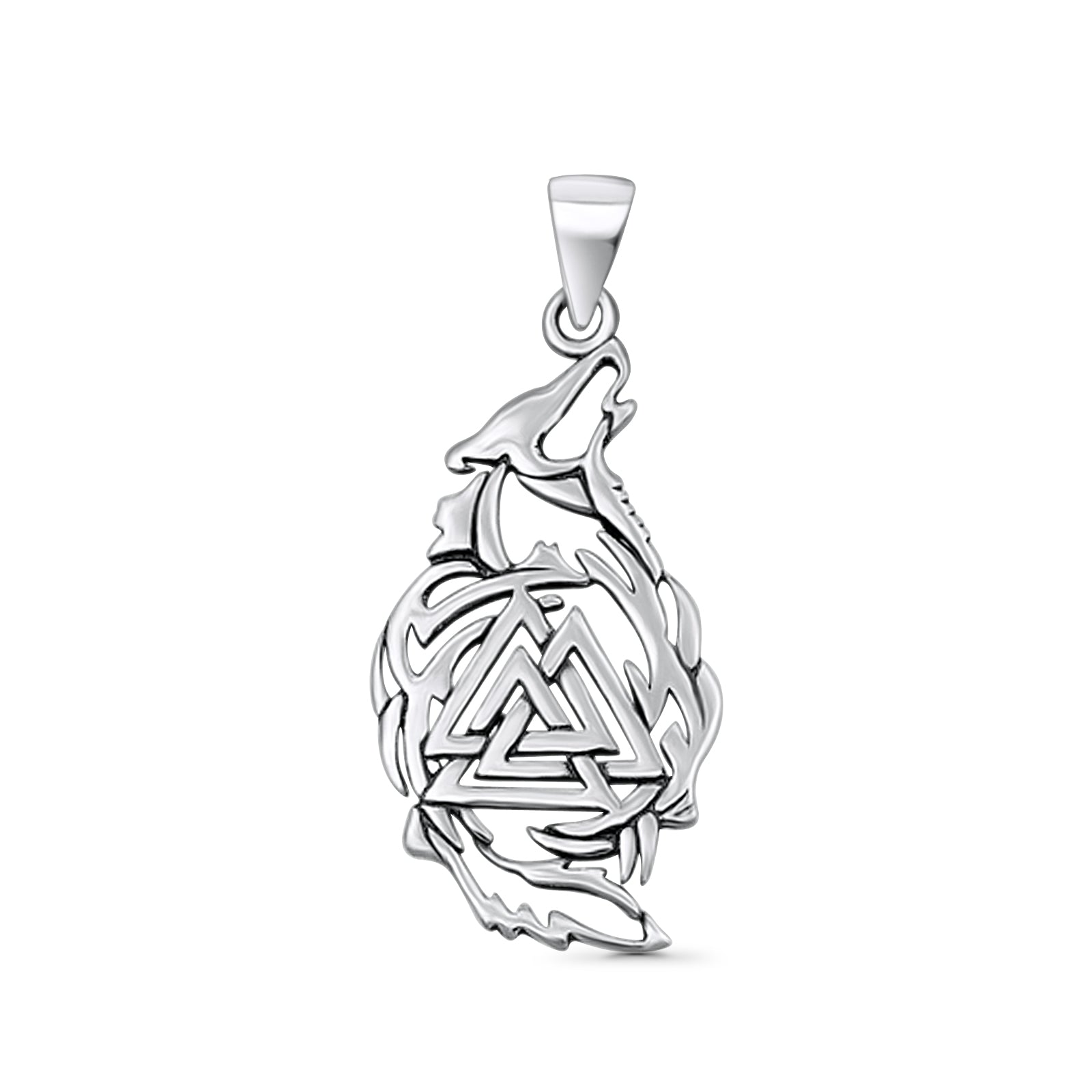 Valknut & Wolf Pendant Snake Chain Necklace Oxidized 925 Sterling Silver