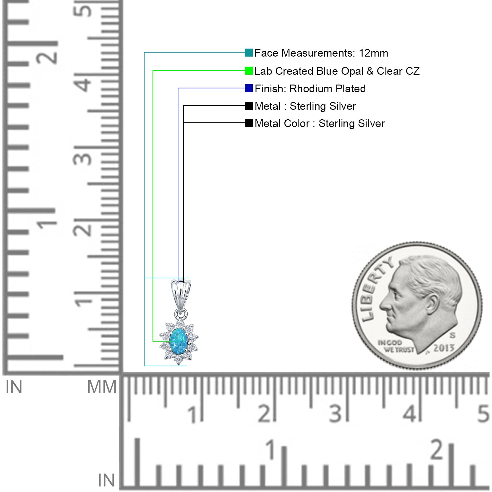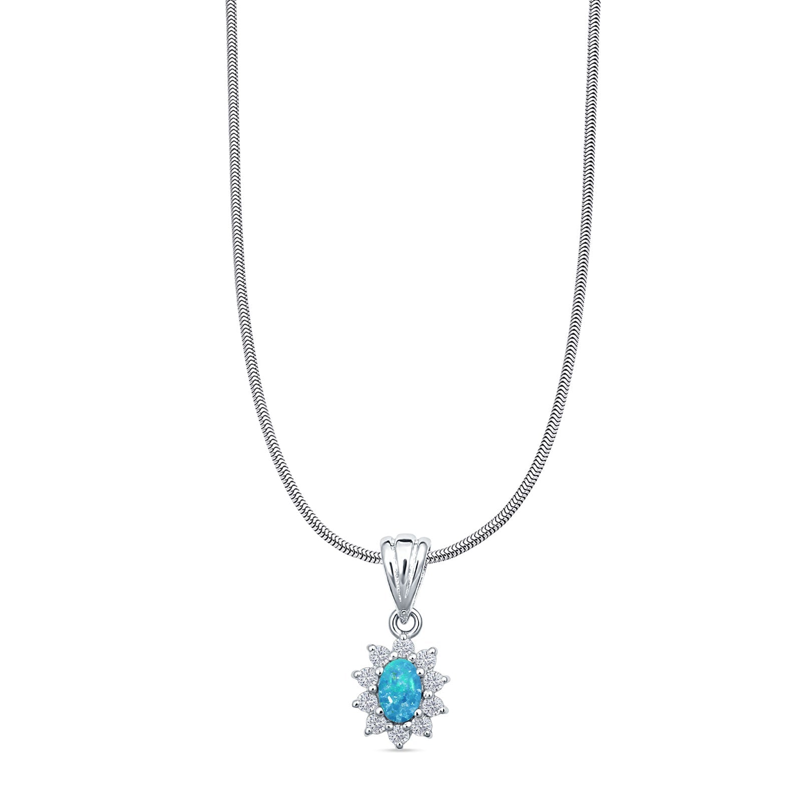 Lab Created Blue Opal & CZ Floral Pendant Snake Chain Necklace 925 Sterling Silver