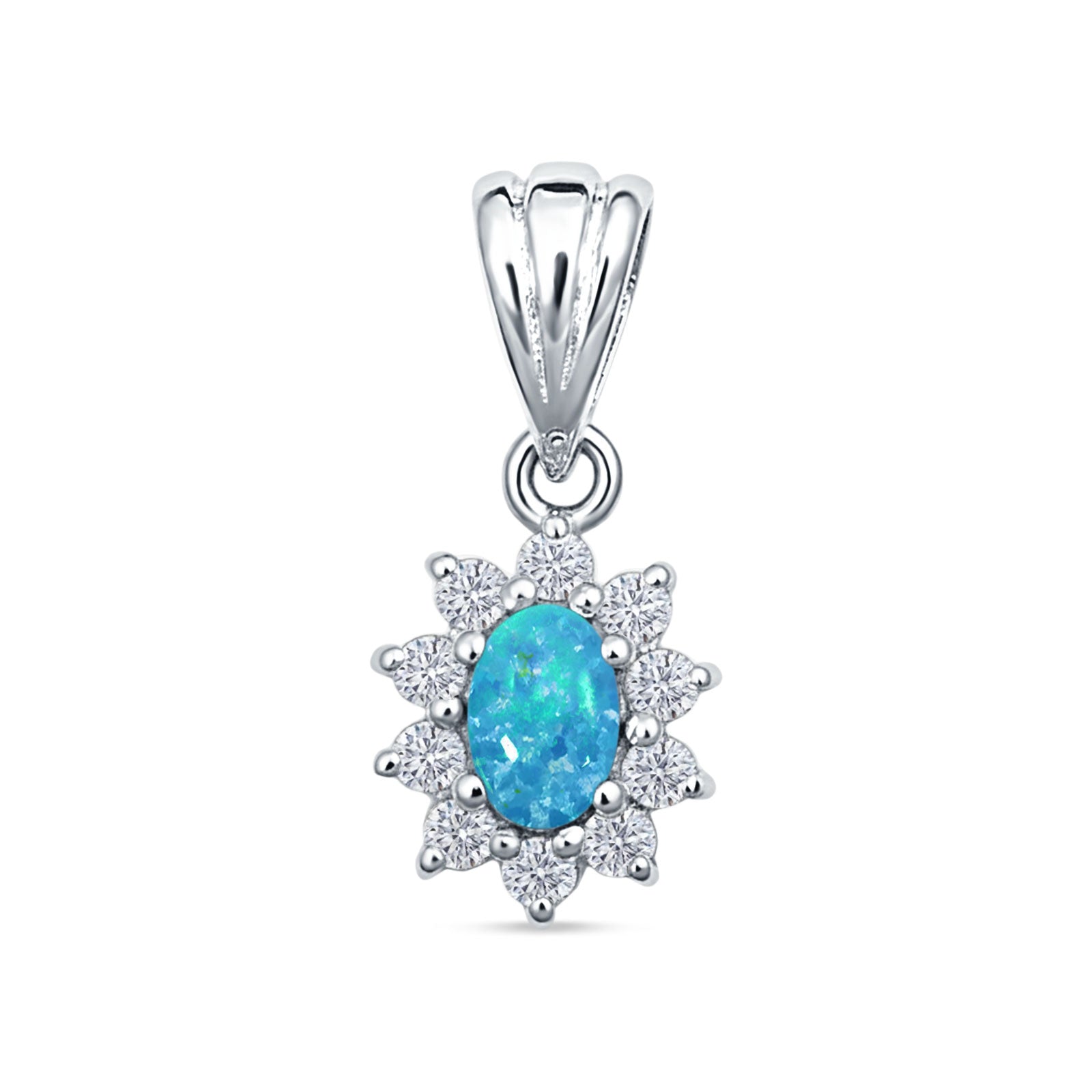 Style: Lab Created Blue Opal & CZ Floral Pendant Necklace