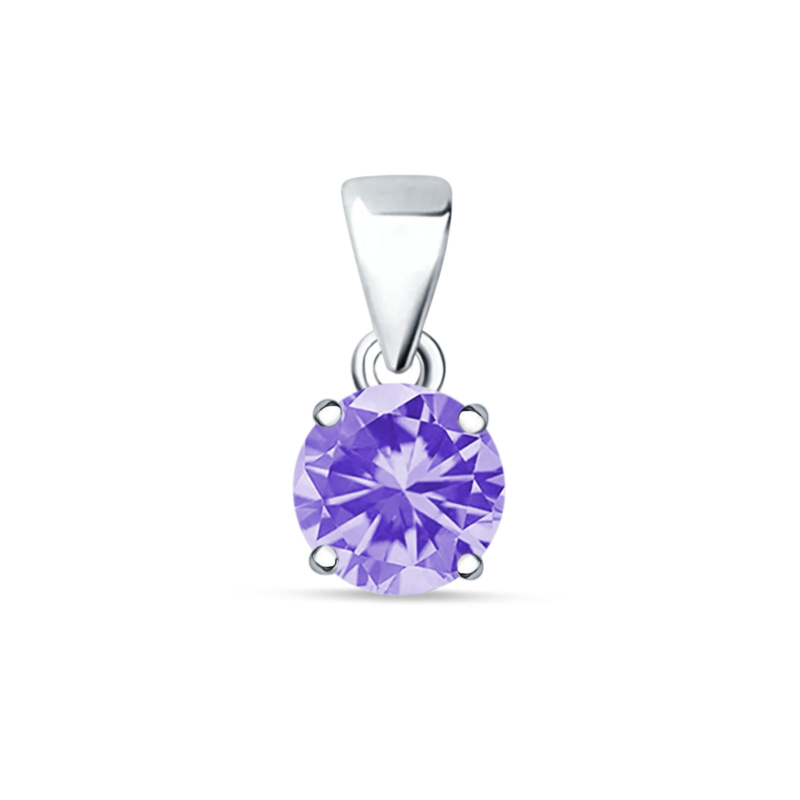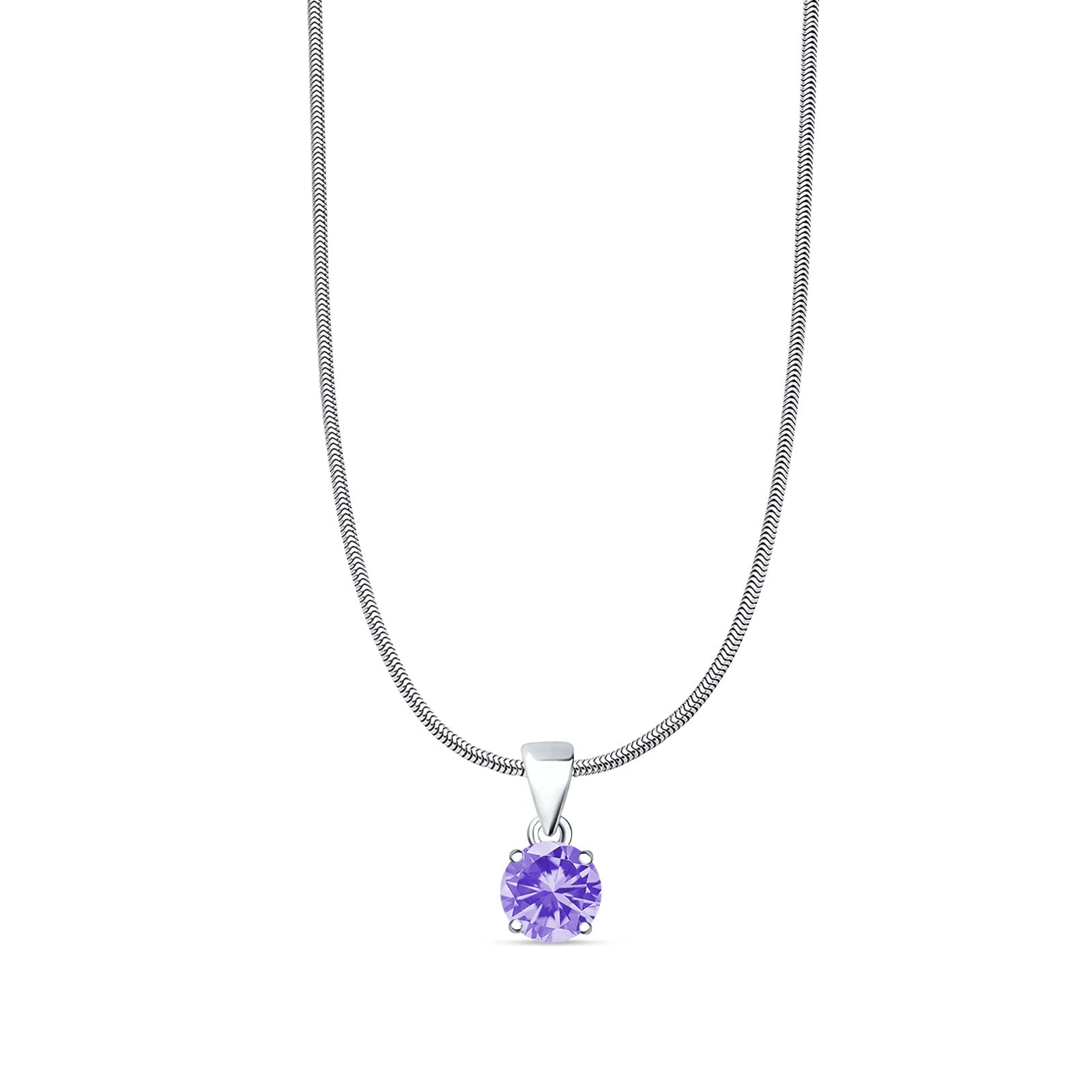 Lavender CZ Round Pendant Snake Chain Necklace 925 Sterling Silver
