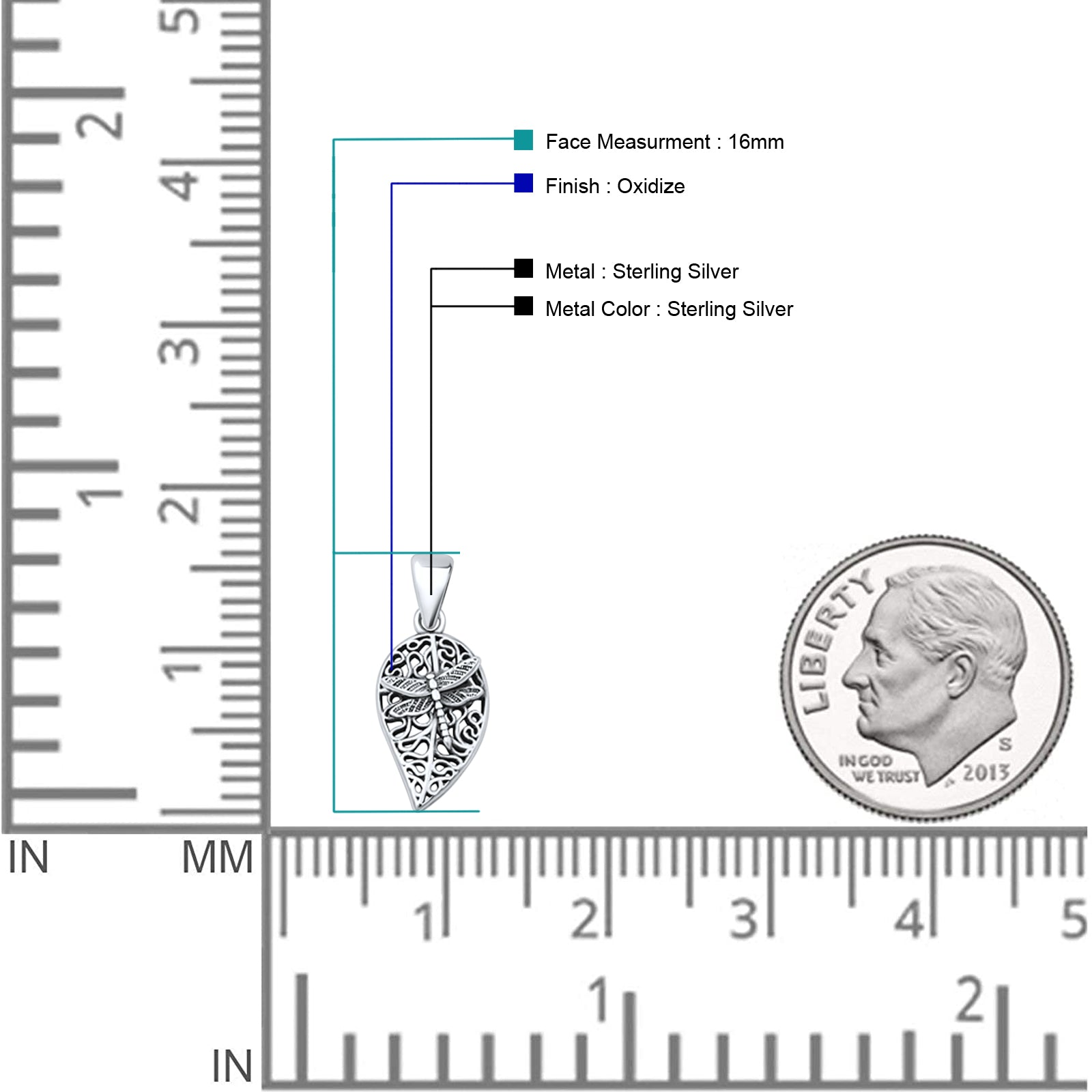 Leaf & Dragonfly Pendant Oxidized Snake Chain Necklace 925 Sterling Silver